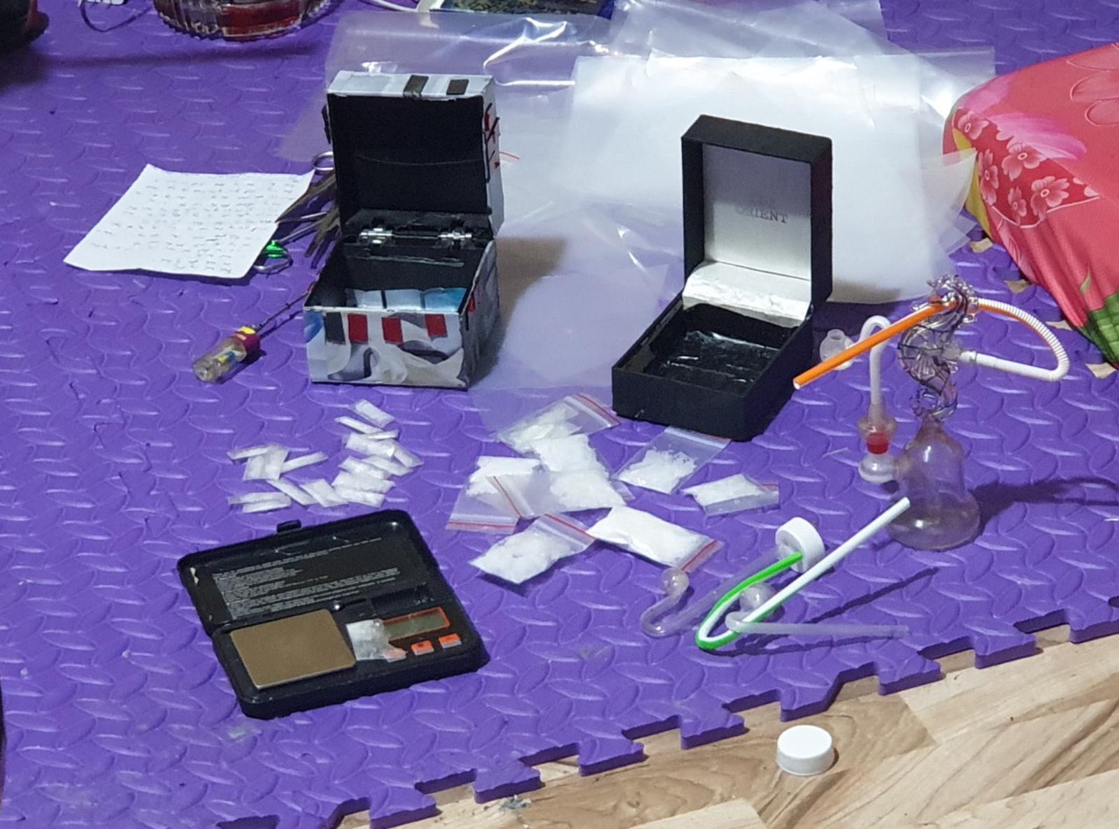 Sau nhiều ngày theo dõi, khoảng 11h30 (sáng nay), Đội Cảnh sát điều tra tội phạm về ma túy, Công an TP Đà Lạt phối hợp cùng Công an phường 7 bất ngờ tiến hành kiểm tra một căn nhà trên đường Nguyễn Siêu, phường 7, TP Đà Lạt.Quá trình kiểm tra, lực lượng chức năng phát hiện và bắt quả tang Nguyễn Thành Sang có hành vi tàng trữ trái phép chất ma túy. Tang vật thu giữ gồm: 1 bình thủy tinh gắn ống nhựa (là dụng cụ dùng để sử dụng ma túy), một cân điện tử dùng để cân, đóng gói chất ma túy, 1 gói nilon chứa tinh thể màu trắng, nghi ma túy. Khám xét thêm, công an phát hiện trong phòng ngủ của Sang có 8 túi nilon lớn bên trong chứa chất tinh thể màu trắng, cùng 25 gói nilon nhỏ, cùng chứa tinh thể màu trắng, nghi ma túy đá. Tang vật lực lượng chức năng thu giữ được tại thời điểm kiểm tra. Ảnh: Thanh Chương Bước đầu làm việc với cơ quan chức năng, Sang khai nhận toàn bộ số chất tinh thể màu trắng đựng trong túi nilon trên đều là ma túy đá. Số ma túy này được Sang mua lại của một thanh niên không quen biết bằng hình thức gọi điện thoại để giao dịch, sau đó Sang tới điểm hẹn nhận hàng vào lúc 5h (sáng nay) trên đèo Preen, phường 3, TP Đà Lạt. Sang là đối tượng bắt đầu chơi ma túy đá vào năm 2019. Căn nhà trên được Sang thuê nguyên căn để ở và làm việc. Vụ việc đang được Công an TP Đà Lạt tiếp tục điều tra, làm rõ.