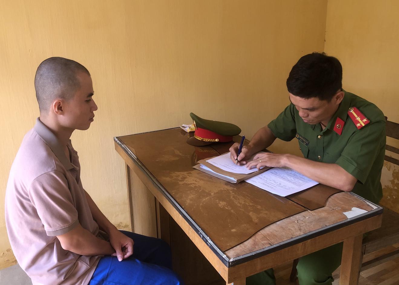 Ngô Trường Thịnh tại cơ quan điều tra. Ảnh: Công an cung cấp