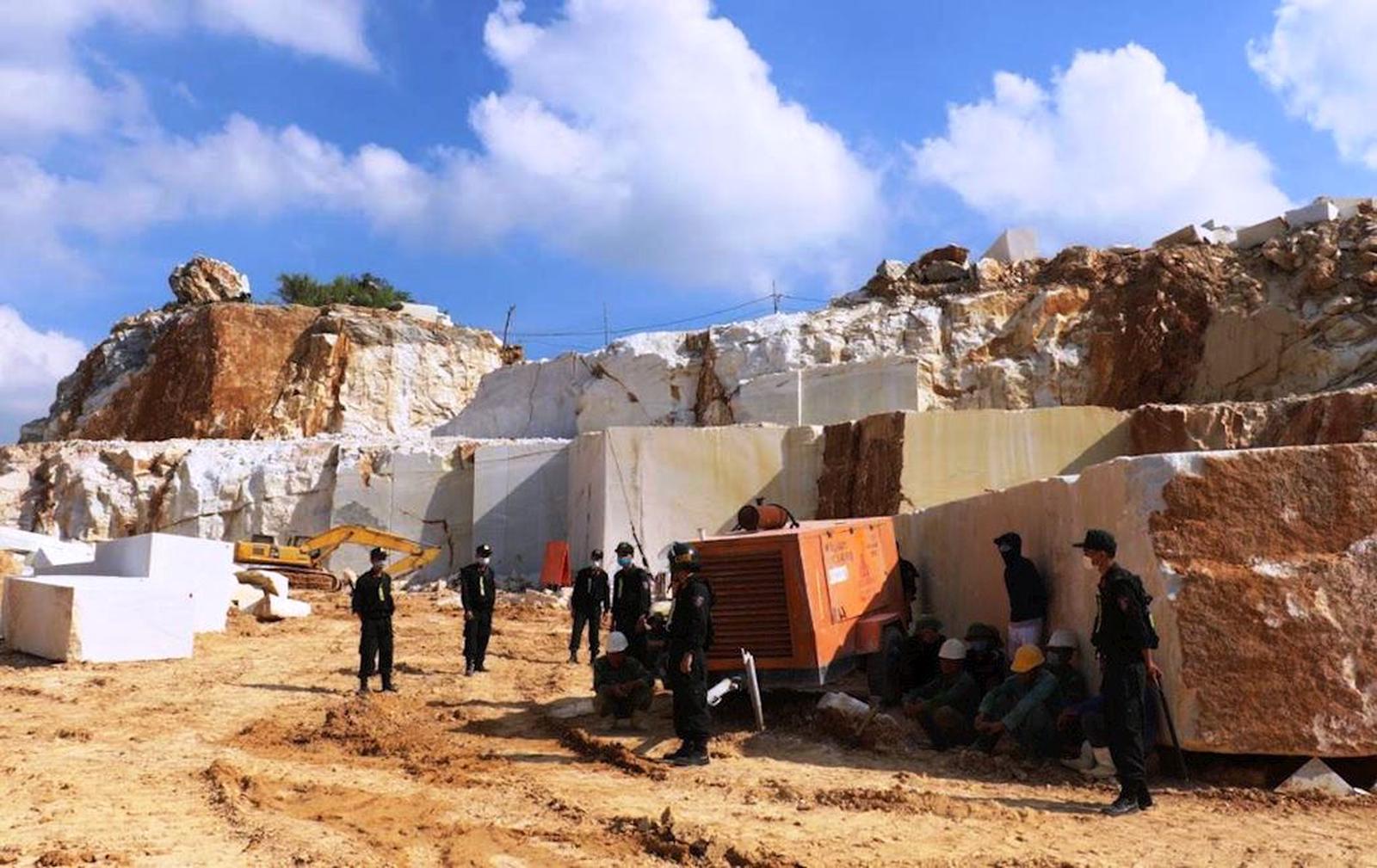 Cơ quan chức năng đã lập biên bản và giữ các máy xúc, máy cắt đá, ô tô tải, máy khoan… nằm trong hệ thống khai thác đá, cùng với gần 1.000m³ đá trắng đang được chế biến thành phẩm.