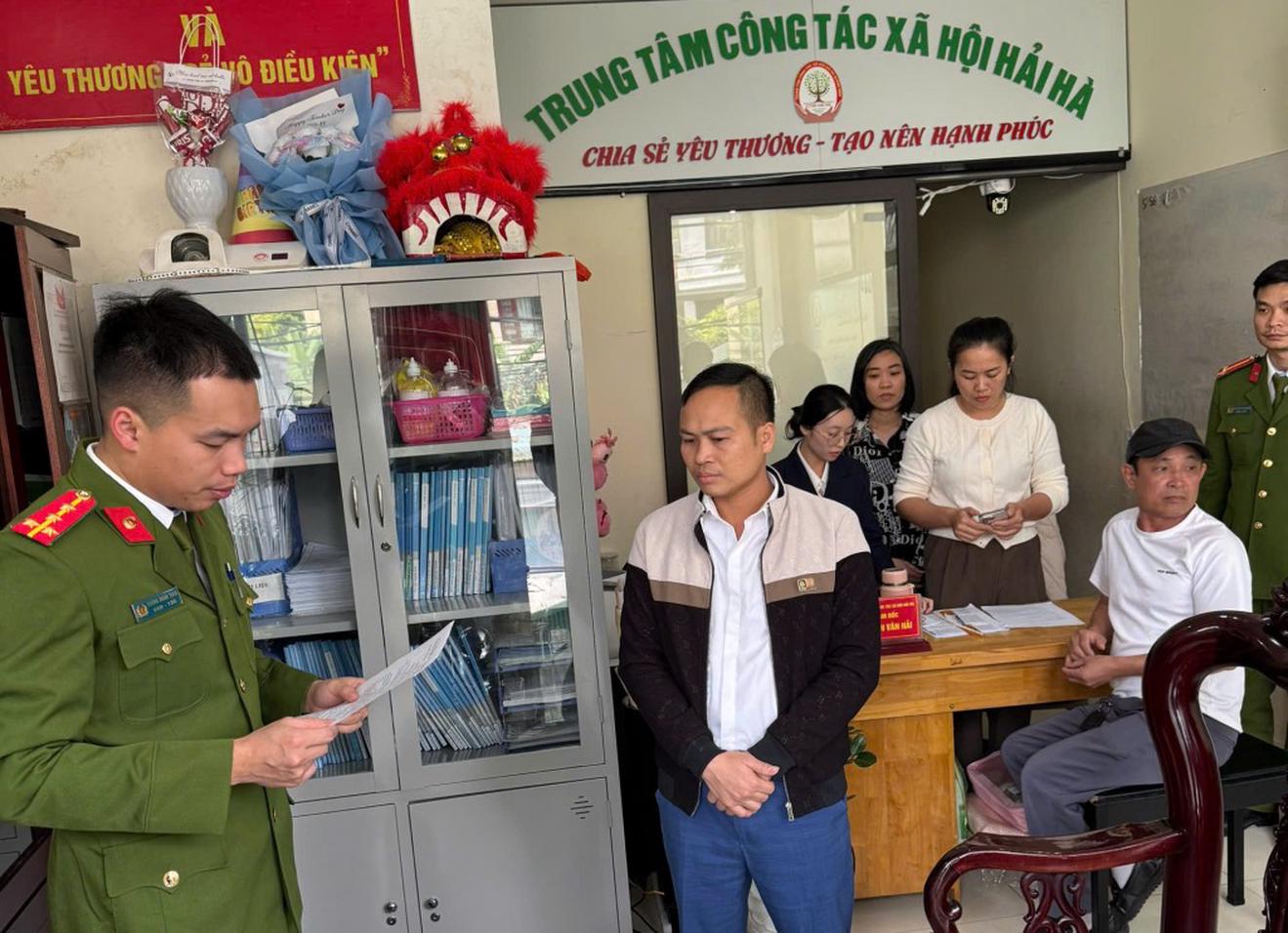 Công an tỉnh Quảng Ninh thực hiện quy trình tố tụng đối với Nguyễn Văn Hải, Giám đốc Trung tâm Công tác xã hội Hải Hà. Ảnh: baoquangninh.vn