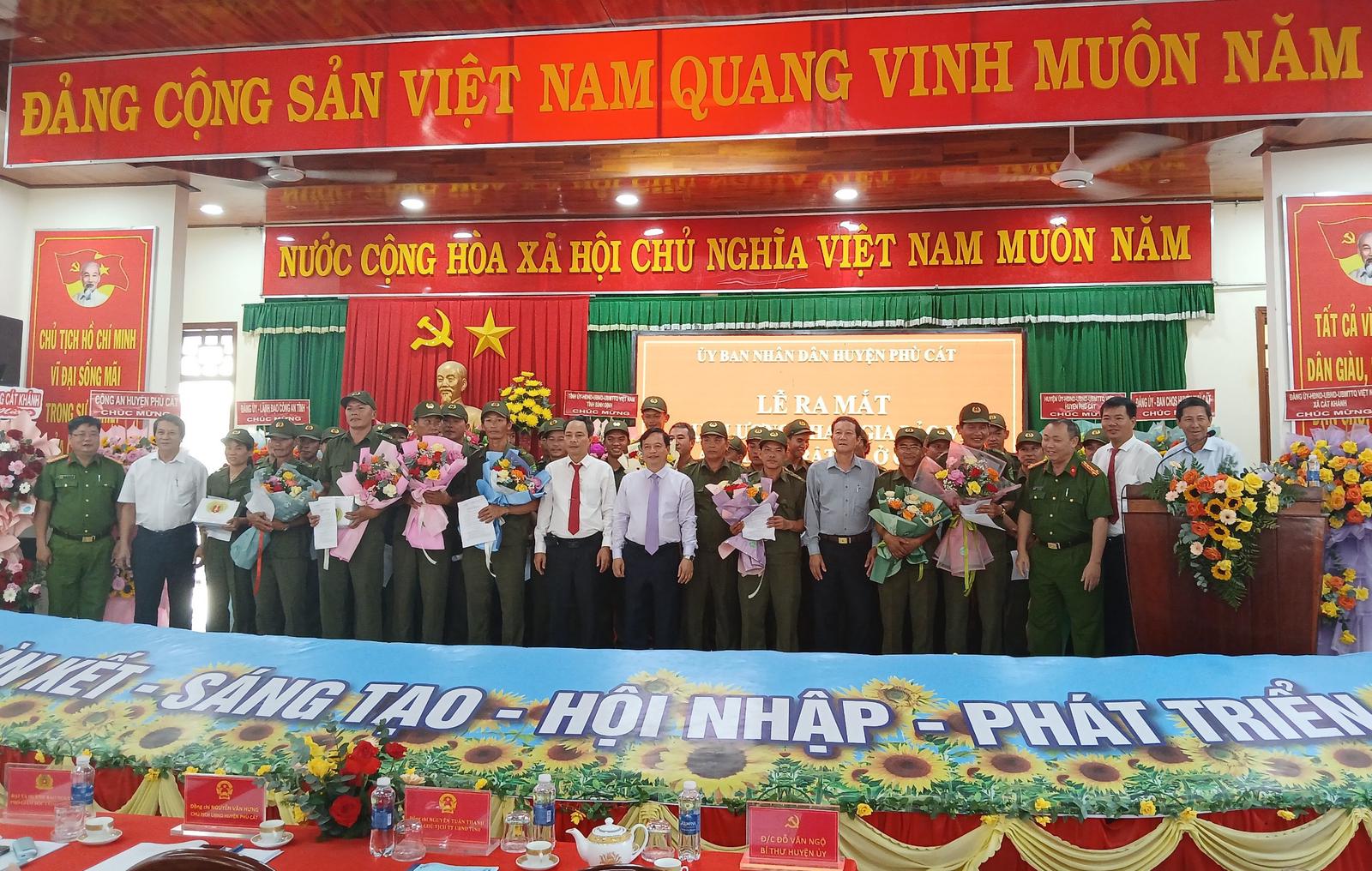 Lễ ra mắt lực lượng tham gia bảo vệ ANTT cơ sở tại huyện Phù Cát. Ảnh: BT