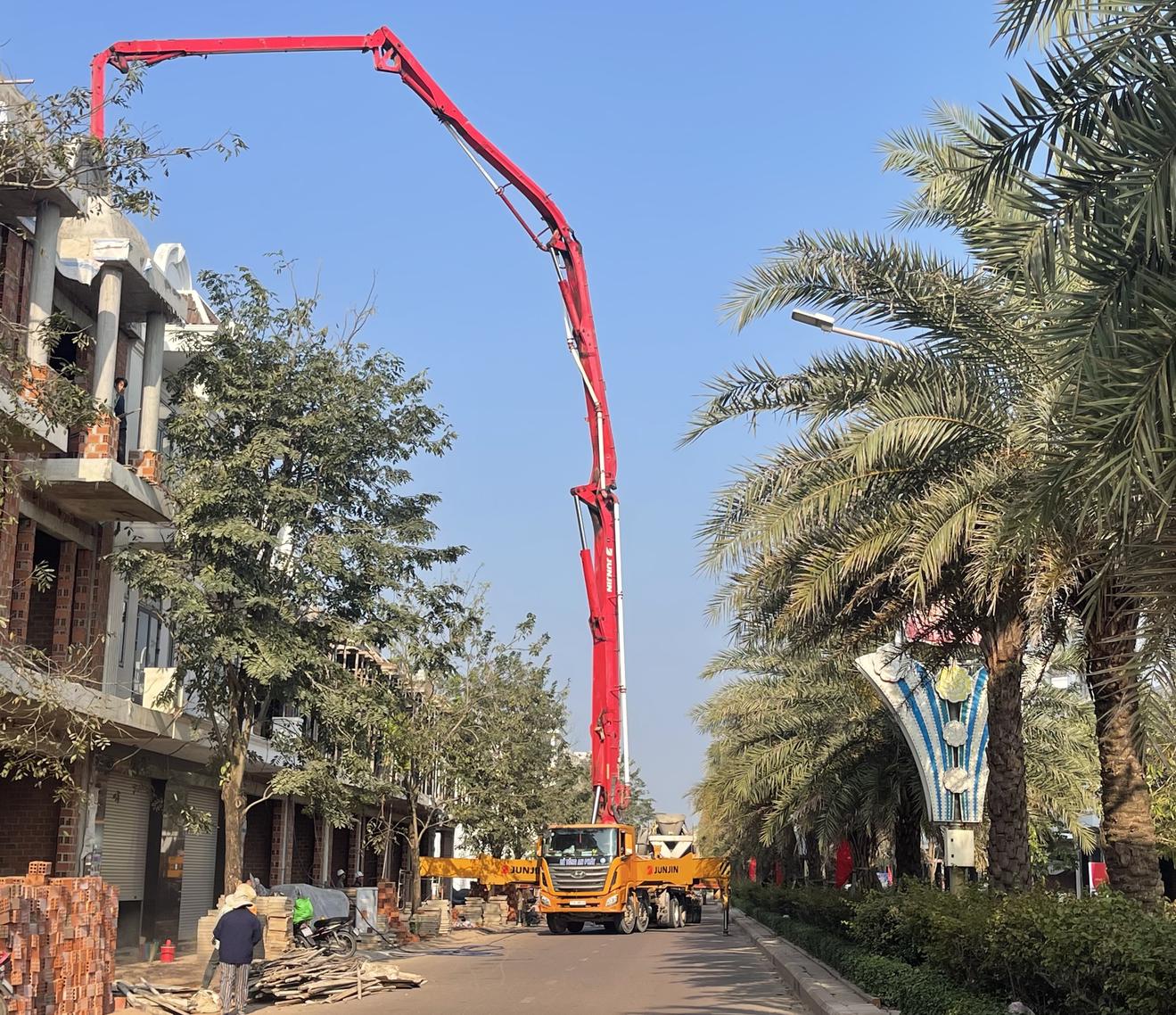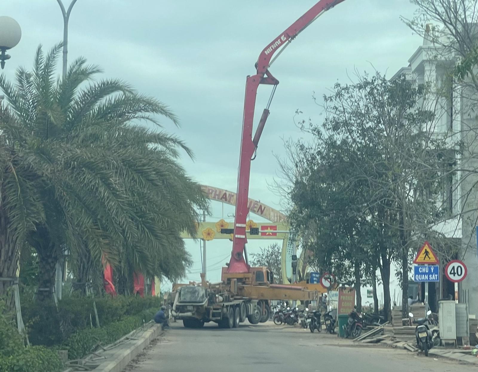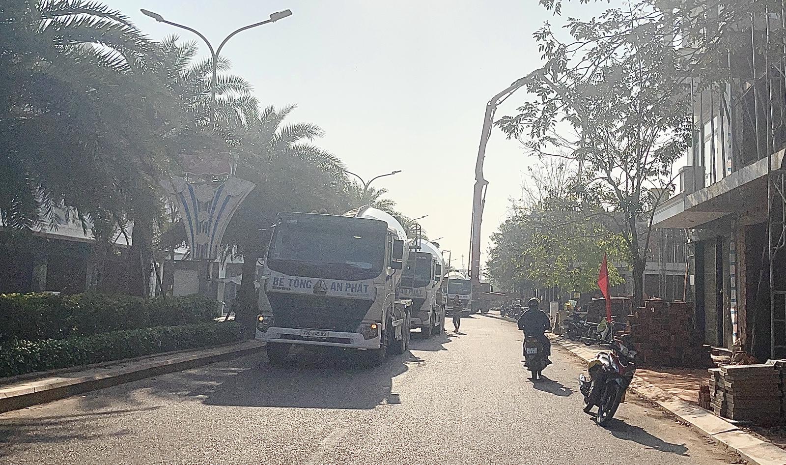 Trước đó, theo ghi nhận ngày 11/3, cũng tại vị trí này trên đường Lê Hồng Phong, phường Bình Định, thị xã An Nhơn, xe bơm bê tông mang logo An Phát dừng chắn hẳn một làn đường để đổ bê tông. Ảnh: BT