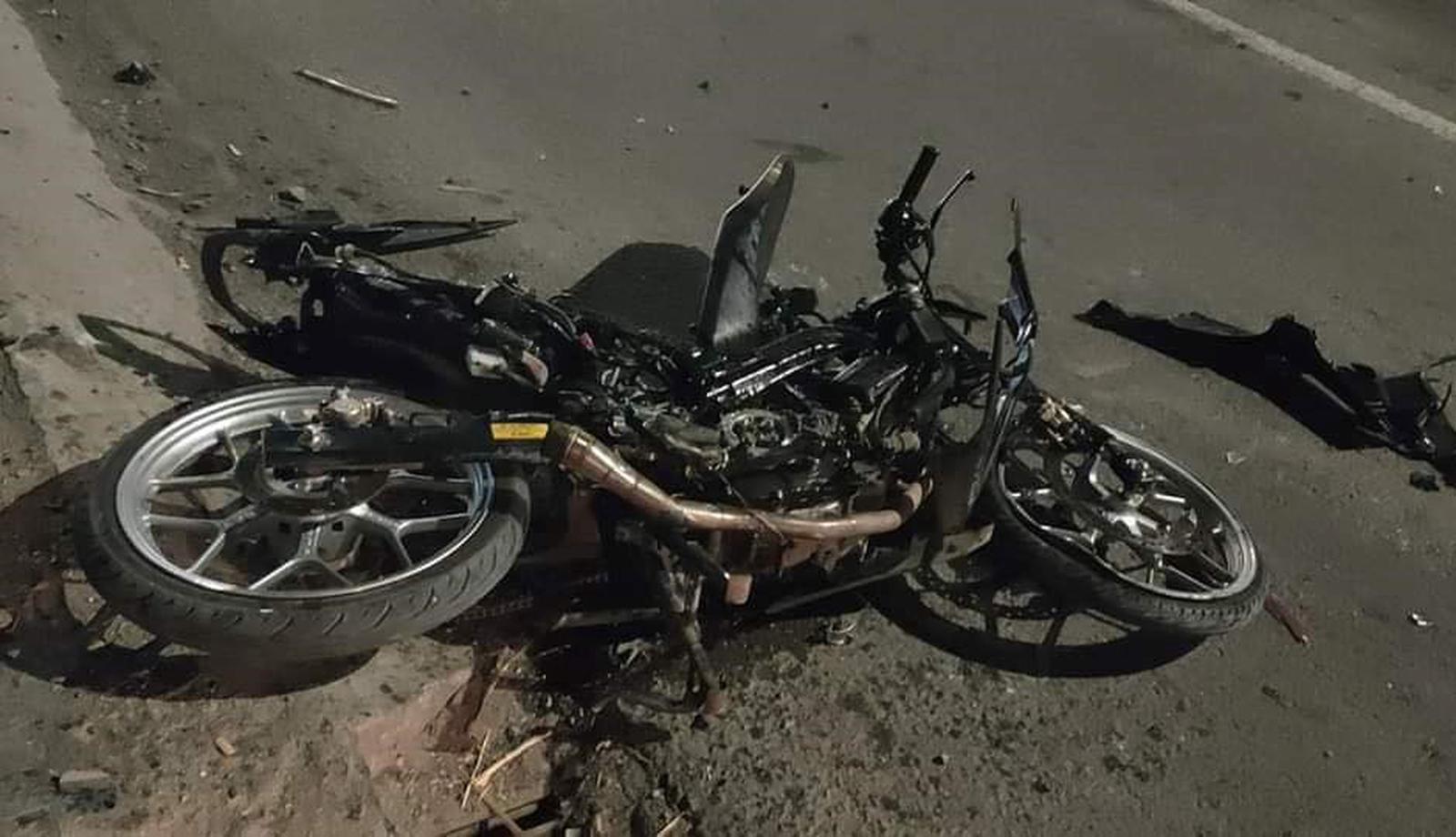 Vụ tai nạn khiến xe máy bị biến dạng, nam thanh niên văng xa 15m tử vong tại chỗ. Ảnh: TM