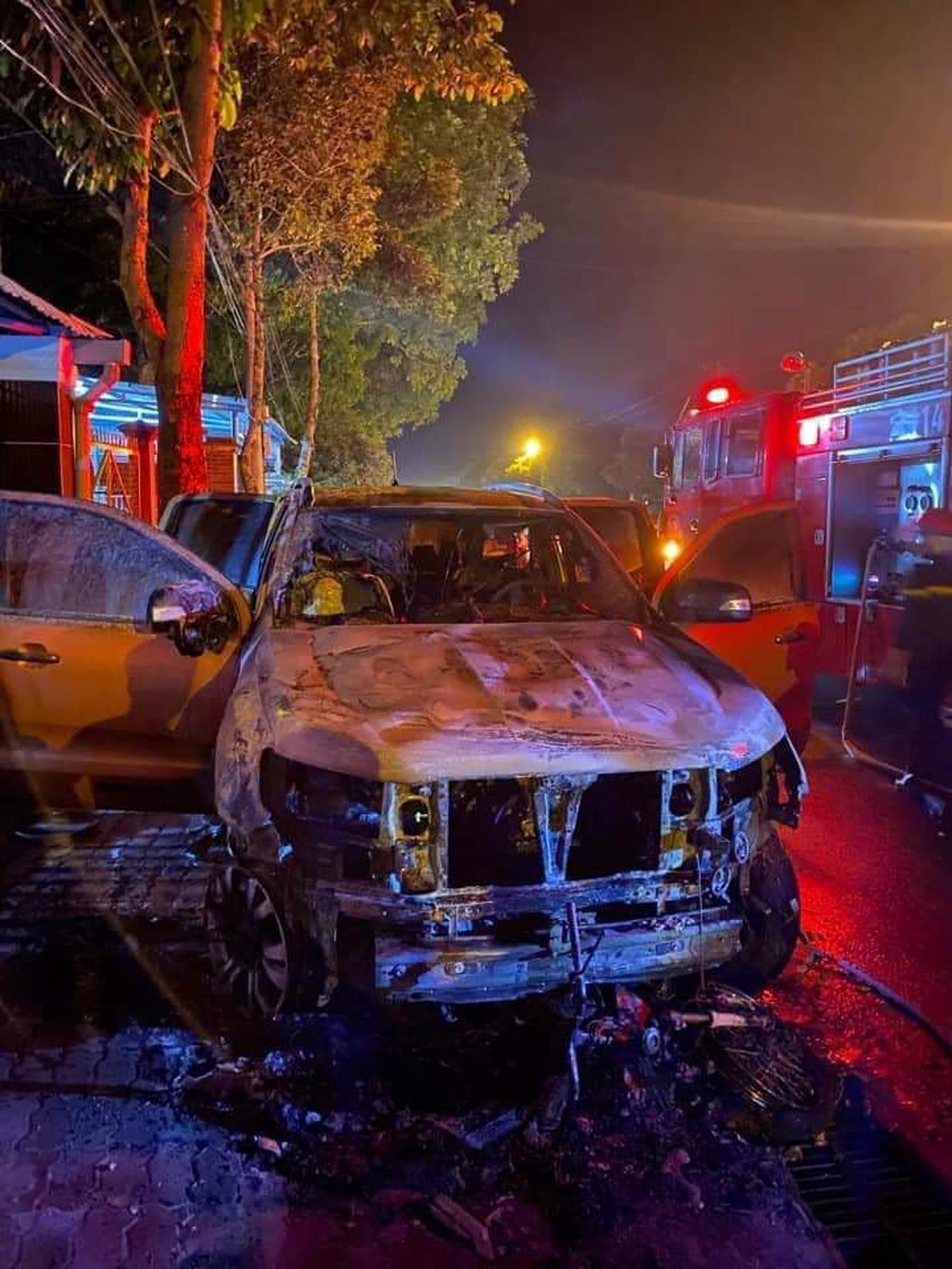 Xe ô tô bị cháy tại hiện trường vụ việc. (Ảnh: TM)