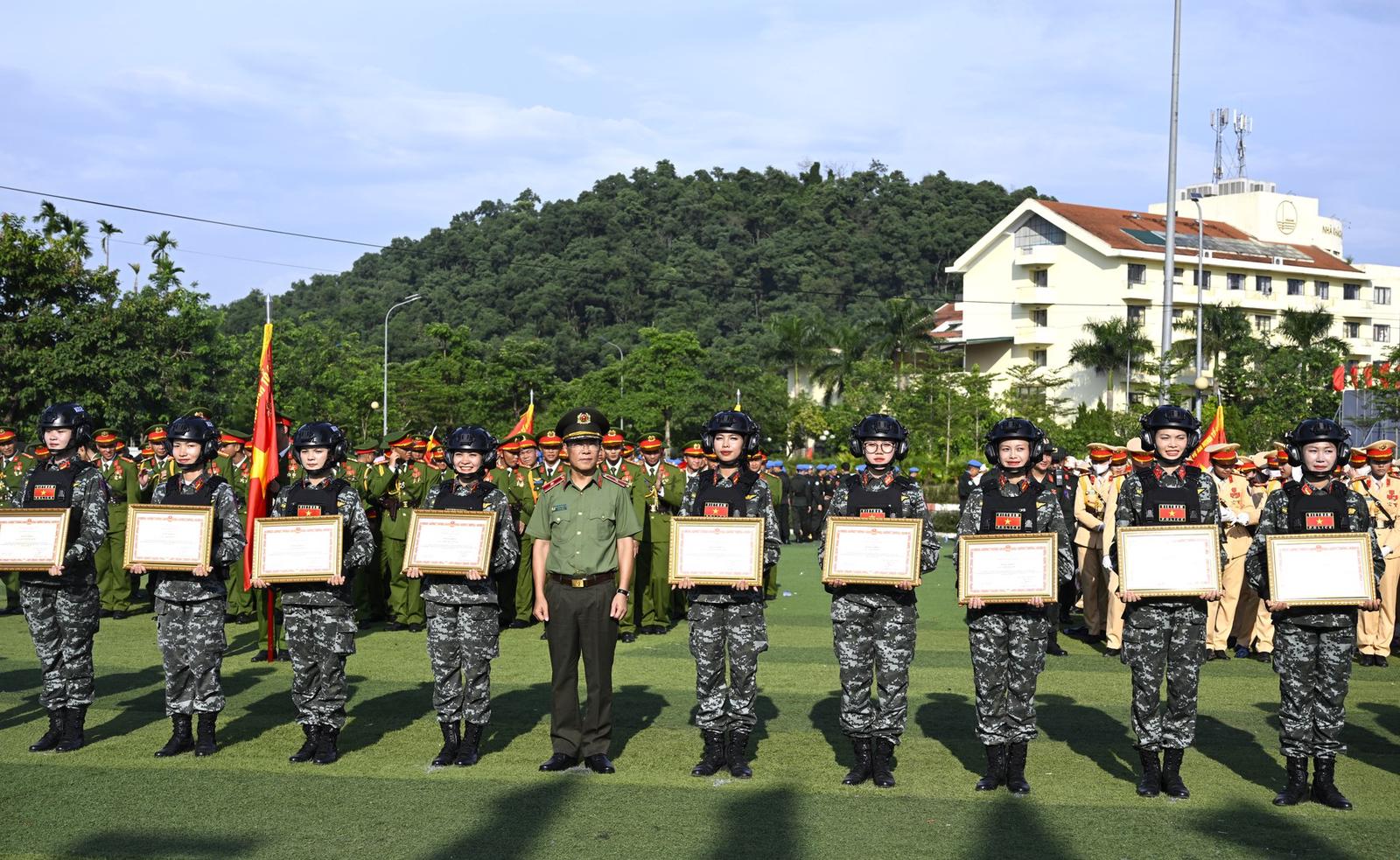 Nữ cán bộ, chiến sĩ, học viên tham gia diễu binh nhận khen thưởng tại buổi tổng kết chiều 2/9/2025. Ảnh: Bộ Công an