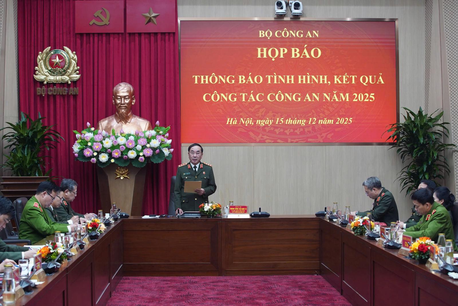 Ngày 15/12, Bộ Công an tổ chức họp báo thông báo tình hình, kết quả các mặt công tác công an năm 2025, nhiệm vụ công tác trọng tâm năm 2026.