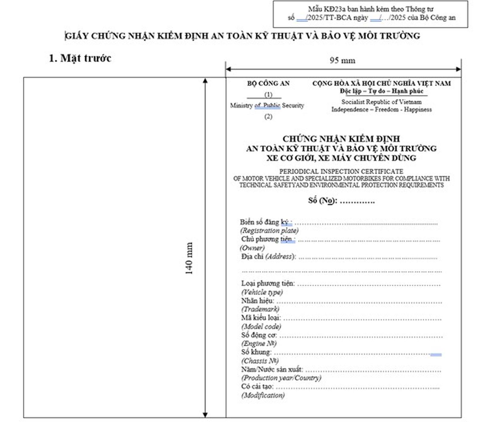 Biểu mẫu giấy chứng nhận kiểm định an toàn kỹ thuật và bảo vệ môi trường xe cơ giới, xe máy chuyên dùng đề xuất thay đổi. Ảnh: NT