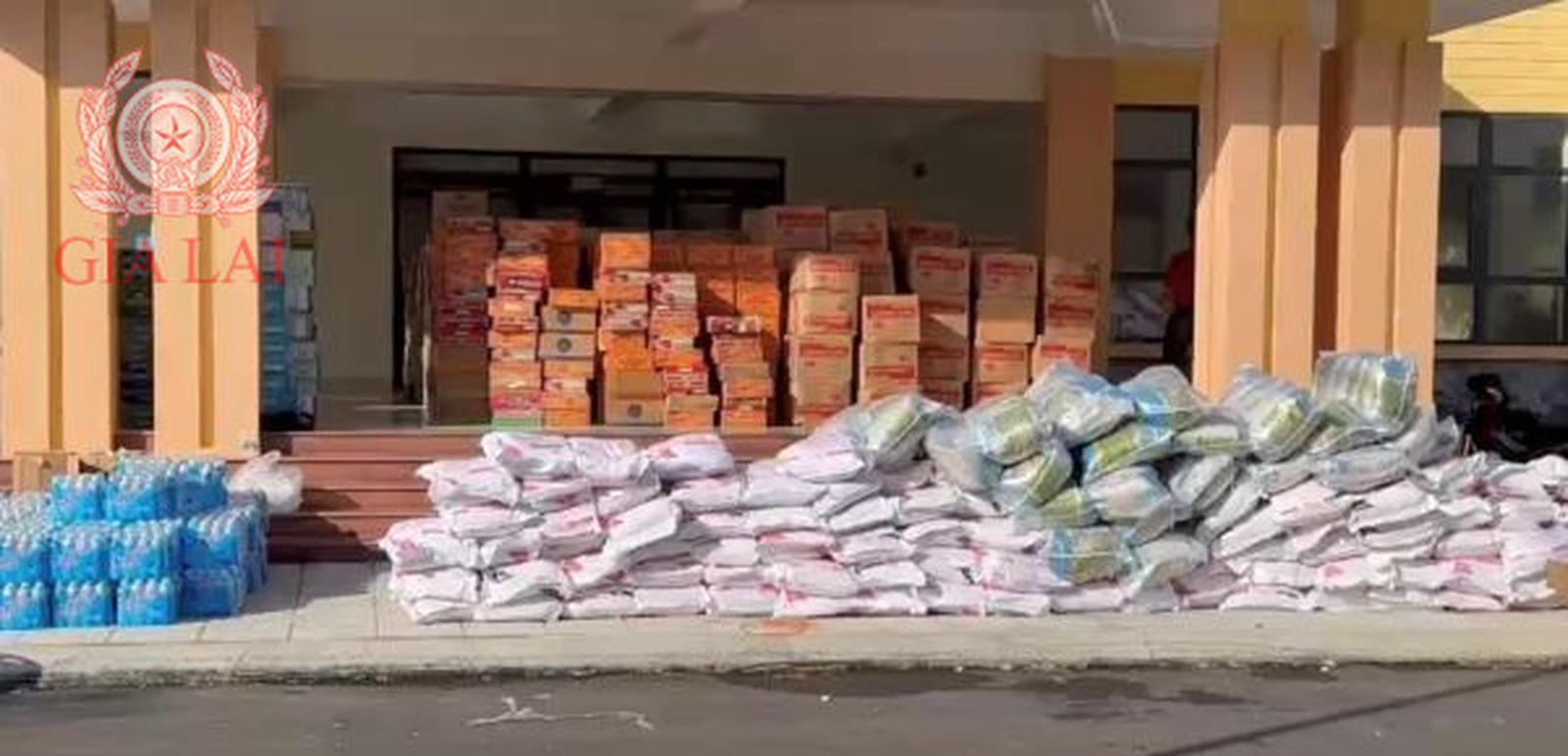 Hàng hóa được tập kết tại Công an tỉnh để chuyển sớm tới Nhân dân. Ảnh: CA Gia Lai