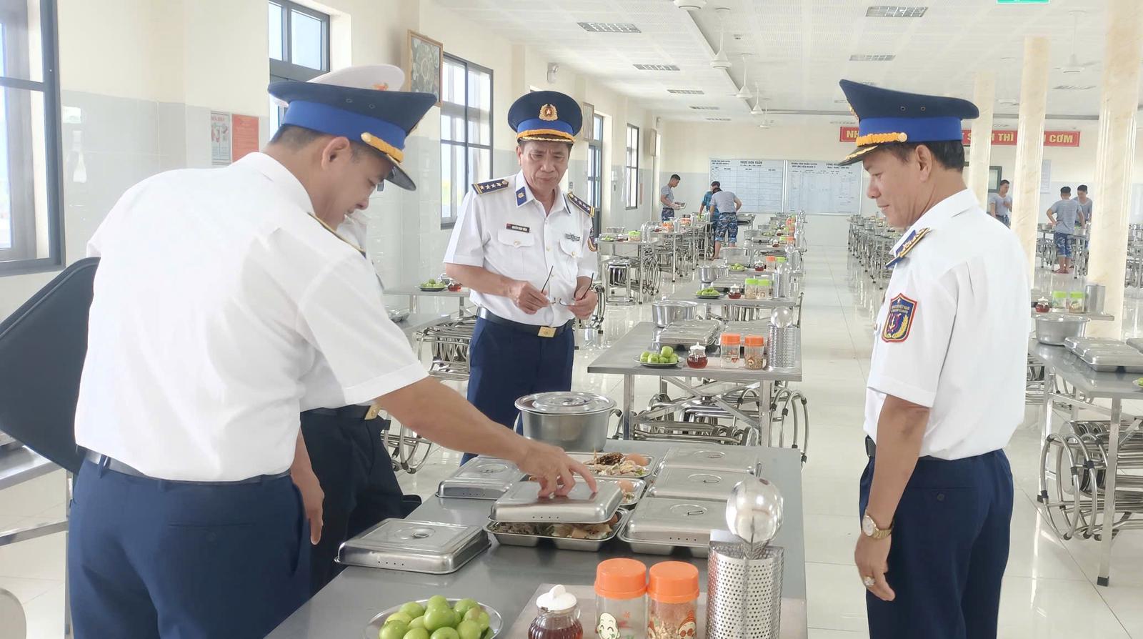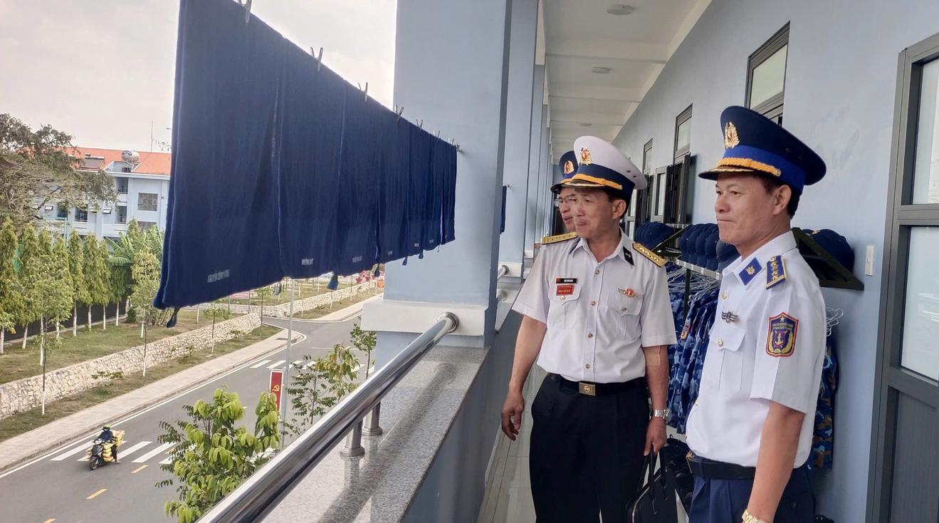 Đoàn công tác Bộ Tư lệnh Vùng Cảnh sát biển 4 kiểm tra nơi ăn ở, sinh hoạt của chiến sĩ mới tại Trung tâm Huấn luyện Vùng 2 Hải quân. Ảnh: Đức Thái