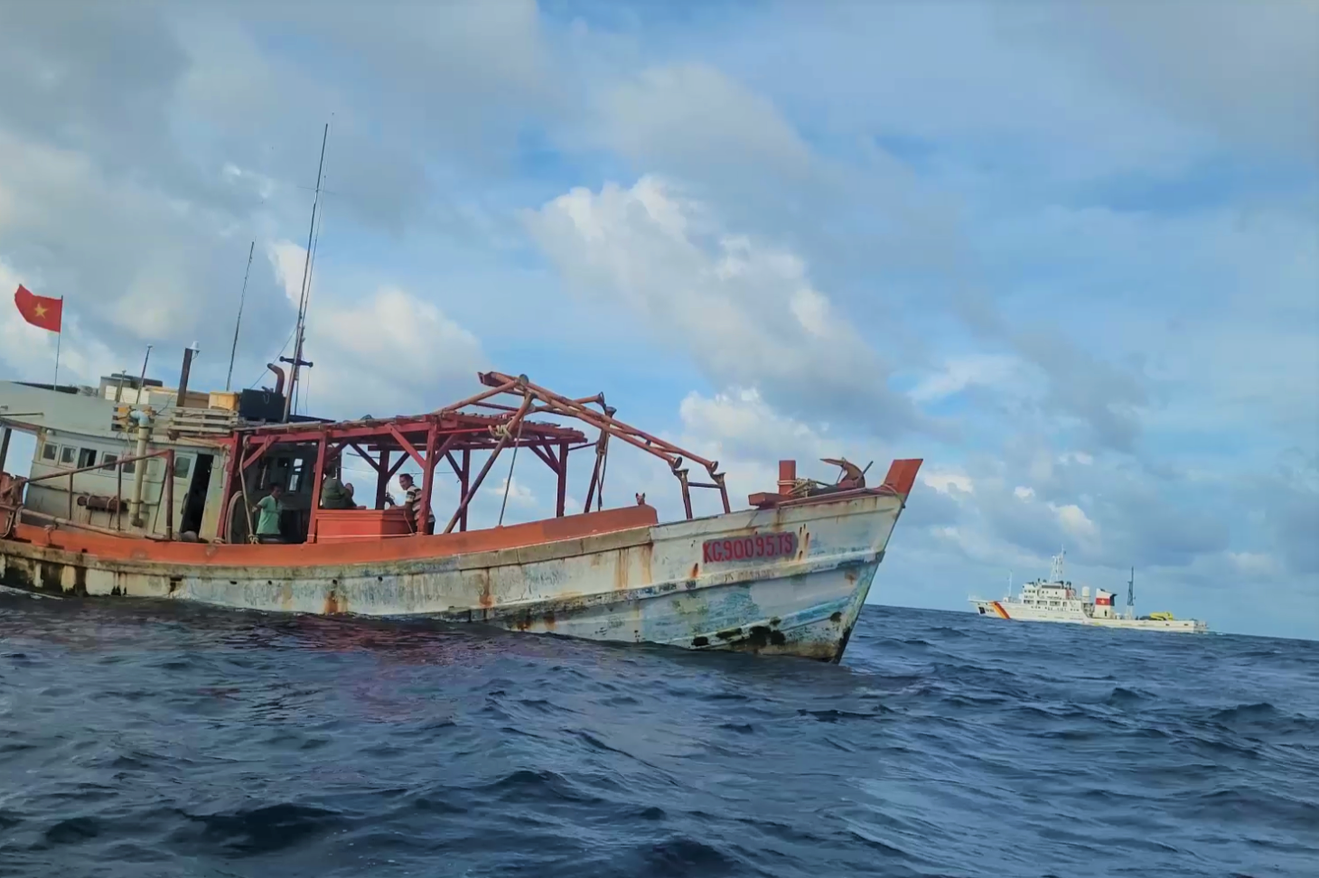 Lực lượng chức năng Bộ Tư lệnh Vùng Cảnh sát biển 4 tiếp cận tàu KG 90095 TS. Ảnh: A.X