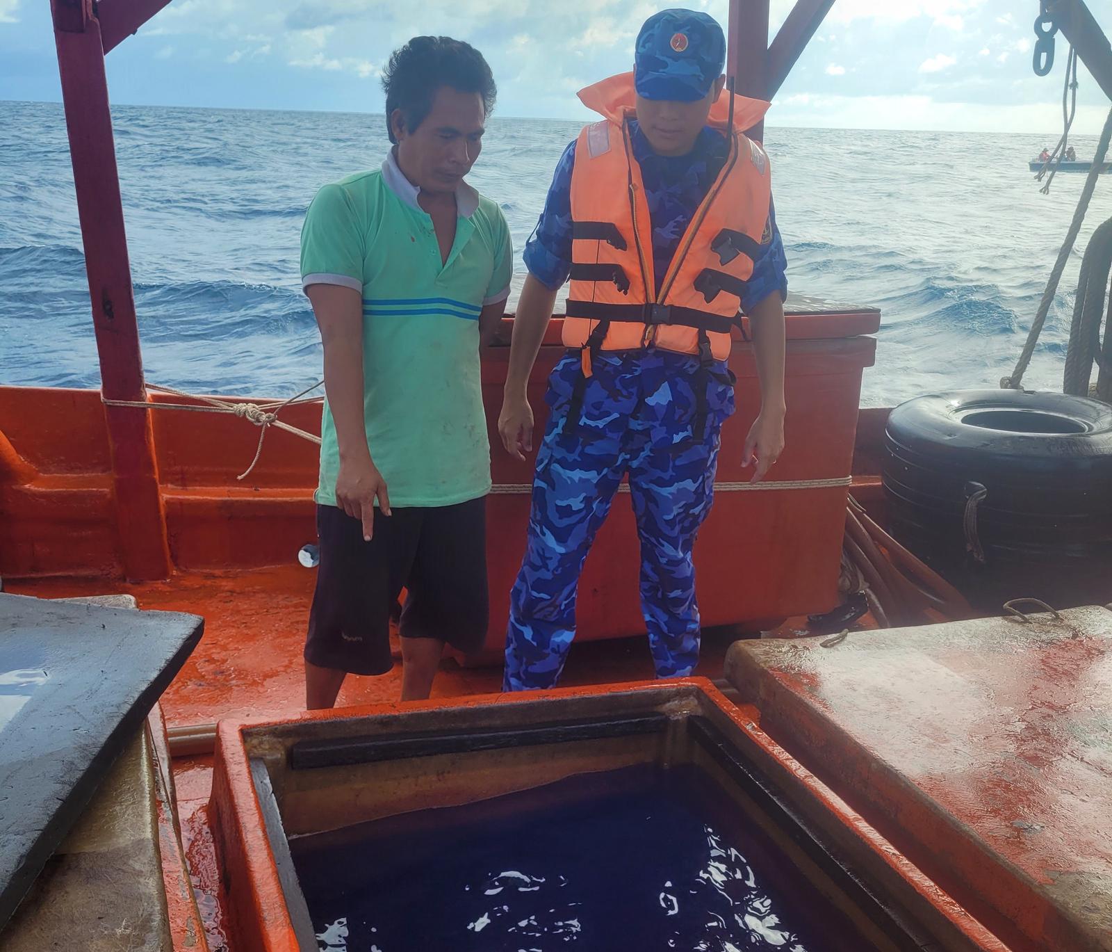 Cụ thể, vào lúc 08h45 ngày 24/8/2025, trong quá trình tuần tra, kiểm tra, kiểm soát trên vùng biển Tây Nam, lực lượng chức năng Bộ Tư lệnh Vùng Cảnh sát biển 4 phát hiện, kiểm tra tàu cá KG 90095 TS có dấu hiệu nghi vấn, tàu do ông Đổng Việt Cường, sinh năm 1994, có địa chỉ tại xã Vĩnh Thông, tỉnh An Giang làm thuyền trưởng, trên tàu có 3 thuyền viên. Tại thời điểm kiểm tra, ông Đổng Việt Cường khai nhận trên tàu cá KG 90095 TS đang vận chuyển khoảng 35.000 lít dầu D.O không có giấy tờ chứng minh nguồn gốc hợp pháp của hàng hóa.