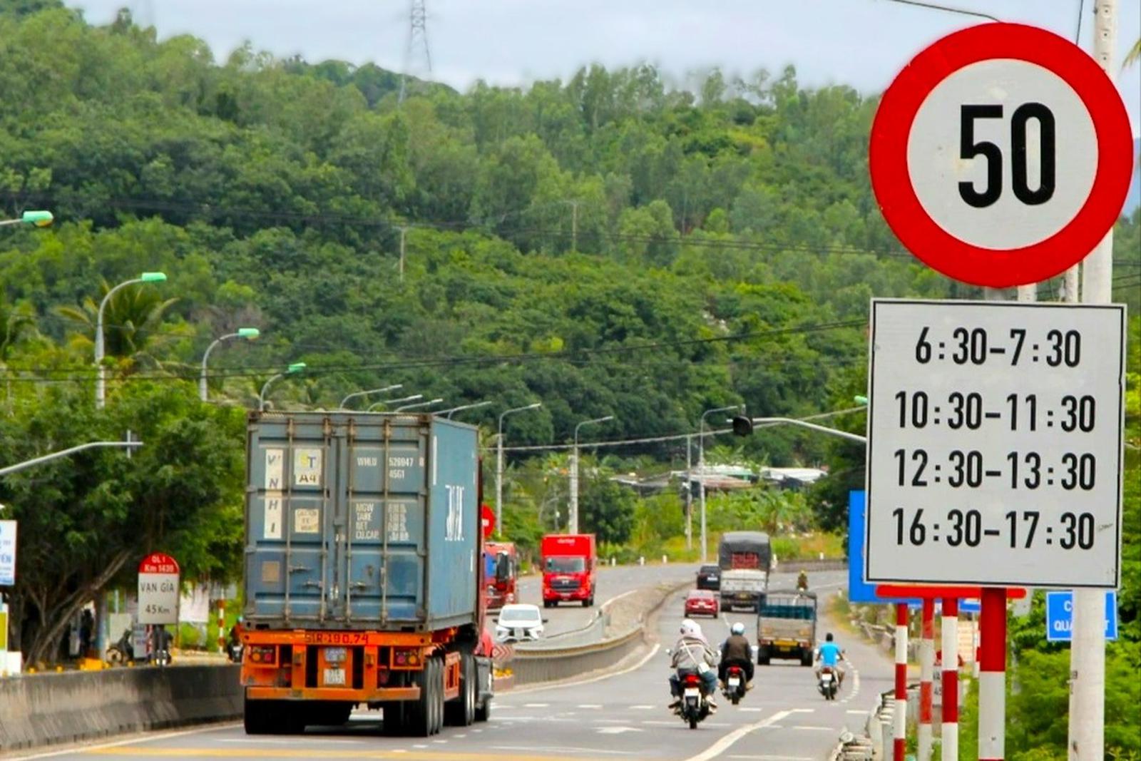 Một biển báo hạn chế tốc độ theo giờ trên quốc lộ 1A. Ảnh: TQ
