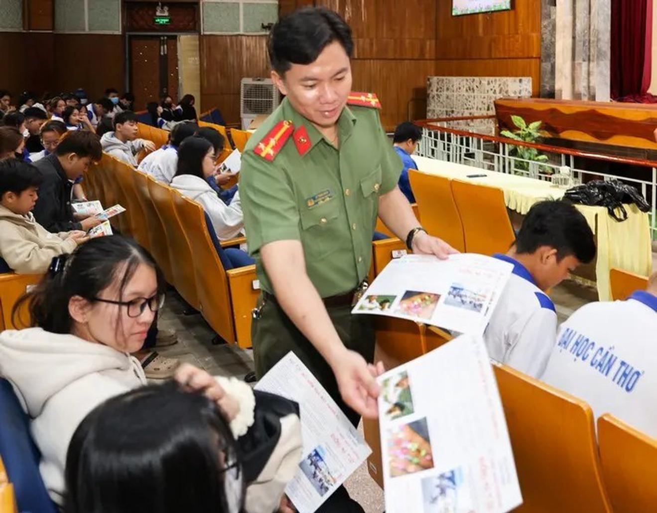 Lực lượng công an tuyên truyền phòng, chống ma túy cho sinh viên Đại học Cần Thơ. Ảnh: PL