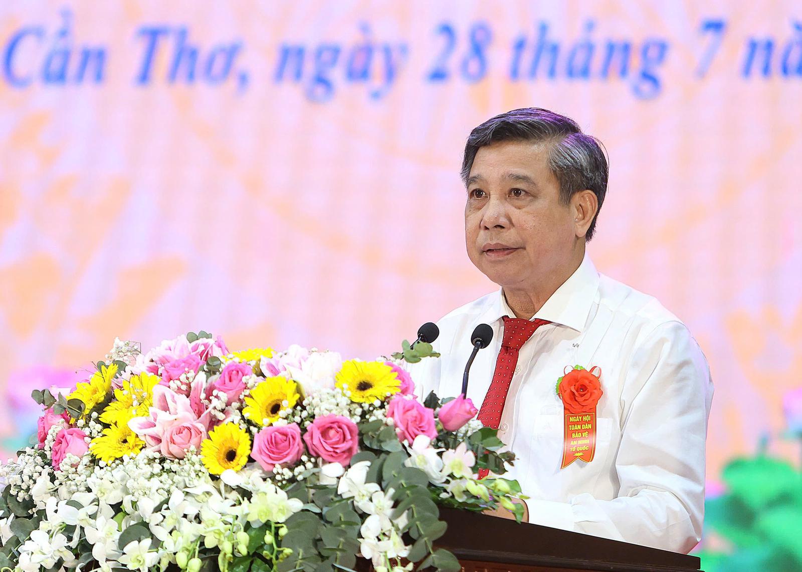 Ông Đồng Văn Thanh, Chủ tịch HĐND TP Cần Thơ phát biểu tại ngày hội toàn dân bảo vệ ANTQ. Ảnh: PL