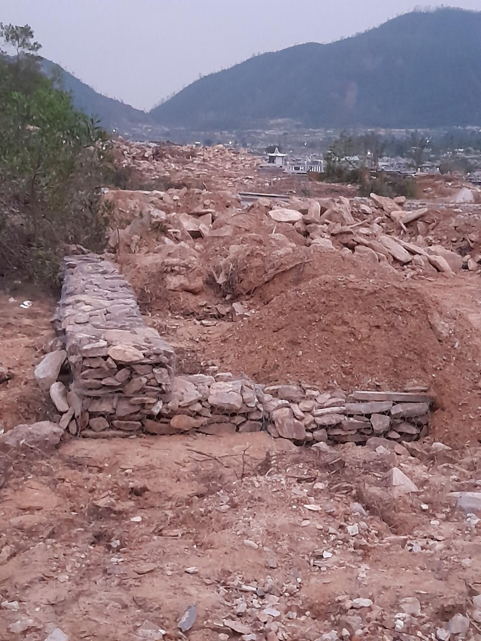 Theo nhận định của một số người dân trong khu vực, lợi dụng sạt lở, trời mưa gió liên tục, các đối tượng đã tiến hành san ủi, kè đá ngay chân đồi, xây móng làm khuôn viên để lấn chiếm mặt bằng đất vành đai cây xanh, xí phần đất bán chôn mộ.