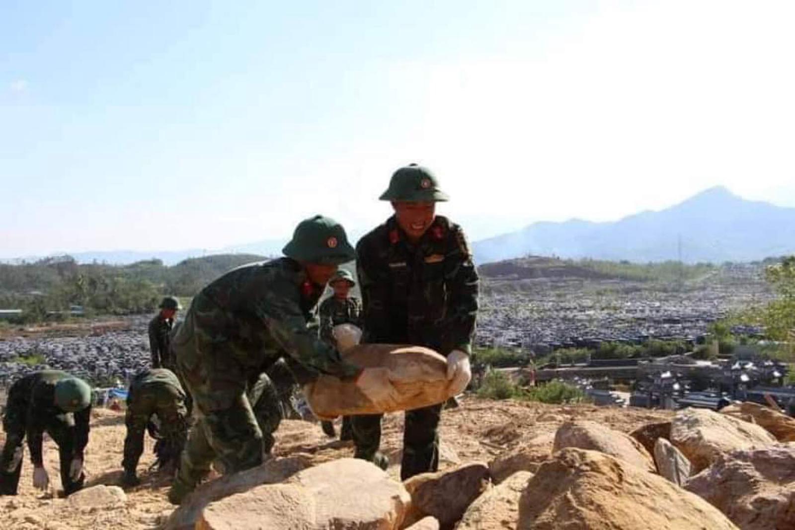 Từ ngày 21/10 đến nay, hơn 1.000 cán bộ, chiến sỹ Sư đoàn 315 (Quân khu 5) và Bộ Chỉ huy Quân sự TP Đà Nẵng đã có mặt tại hiện trường thu dọn đất, đá vùi lấp mộ. Công việc này diễn ra vô cùng vất vả; đặc biệt là giữa thời tiết mưa gió liên tục.