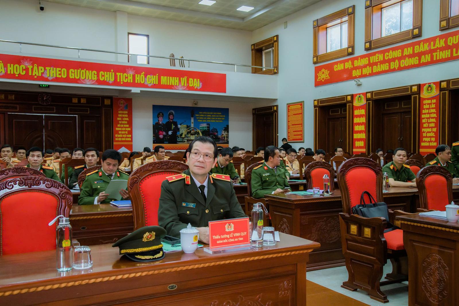 Thiếu tướng Lê Vinh Quy - Giám đốc Công an tỉnh Đắk Lắk dự và chỉ đạo hội nghị. Ảnh: HH