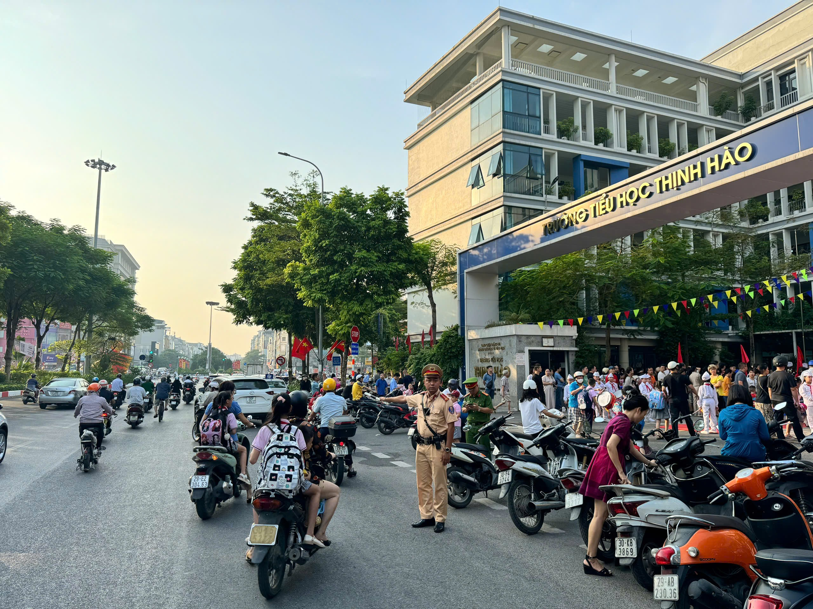 (Thanh tra)- Từ 6h sáng 5/9, Phòng Cảnh sát giao thông (CSGT) Công an TP Hà Nội đã bố trí lực lượng ứng trực tại tất cả các điểm nút giao thông, các khu vực trường học để đảm bảo trật tự, an toàn giao thông (TTATGT) cho các em tựu trường. Cùng với đó, các Tổ công tác đặc biệt của Công an TP Hà Nội cũng được triển khai để xử lý nghiêm học sinh, phụ huynh học sinh vi phạm giao thông trong ngày khai giảng.