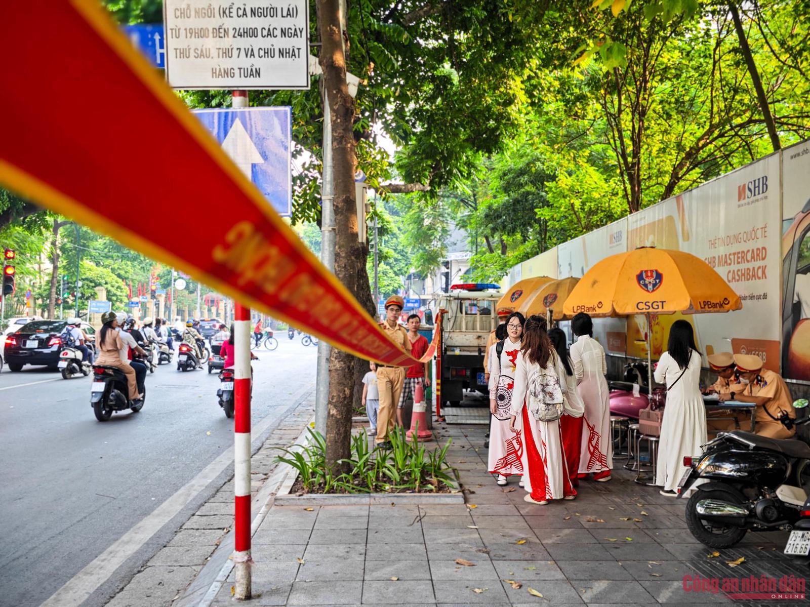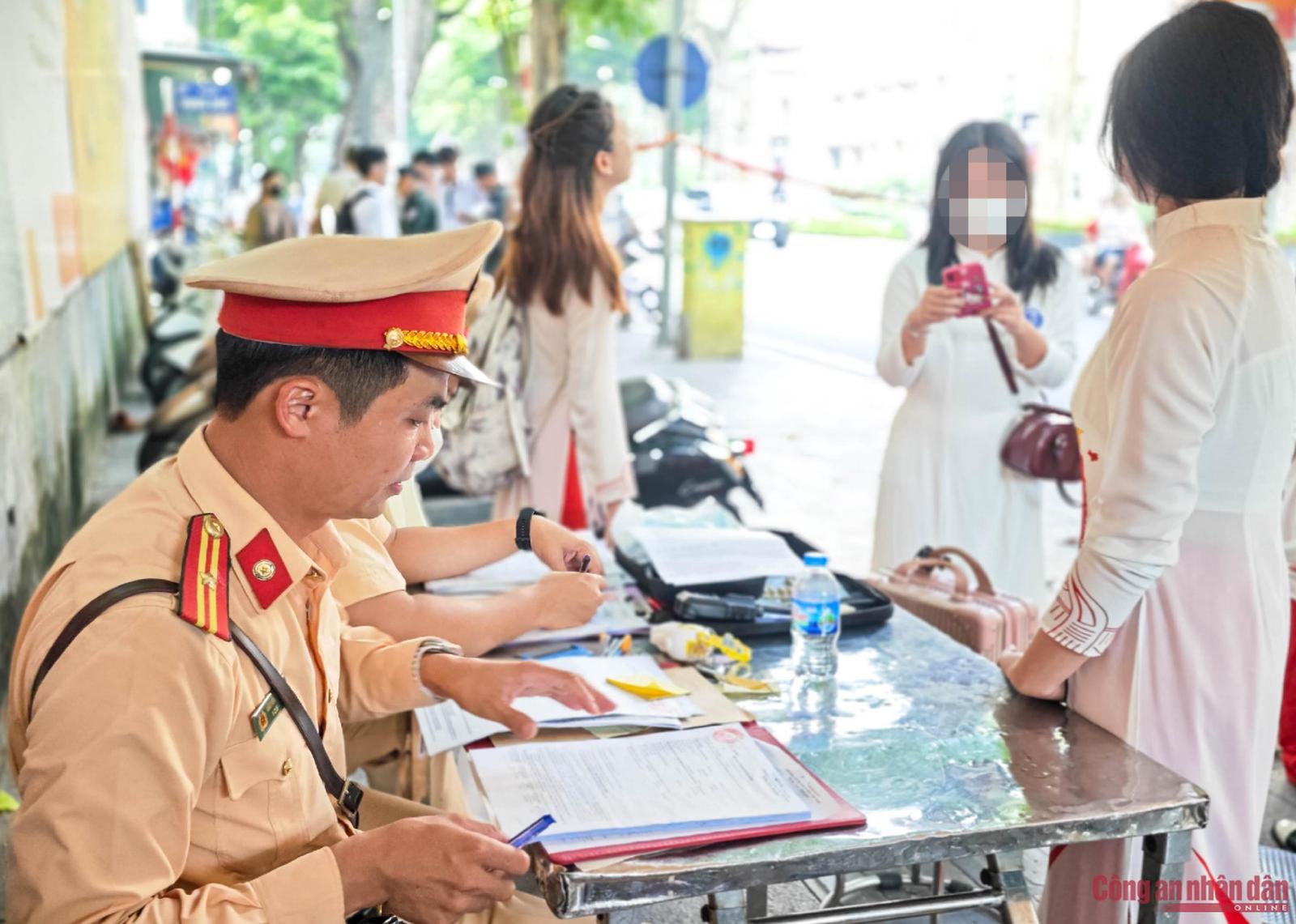 Tại địa bàn quận Hoàn Kiếm, Tây Hồ (Hà Nội), tại các điểm trường THPT Việt Đức, Trần Phú, Chu Văn An... các tổ công tác CSGT đã phối hợp cùng Công an phường, Thanh tra giao thông ứng trực tổ chức điều tiết, phân luồng giao thông.