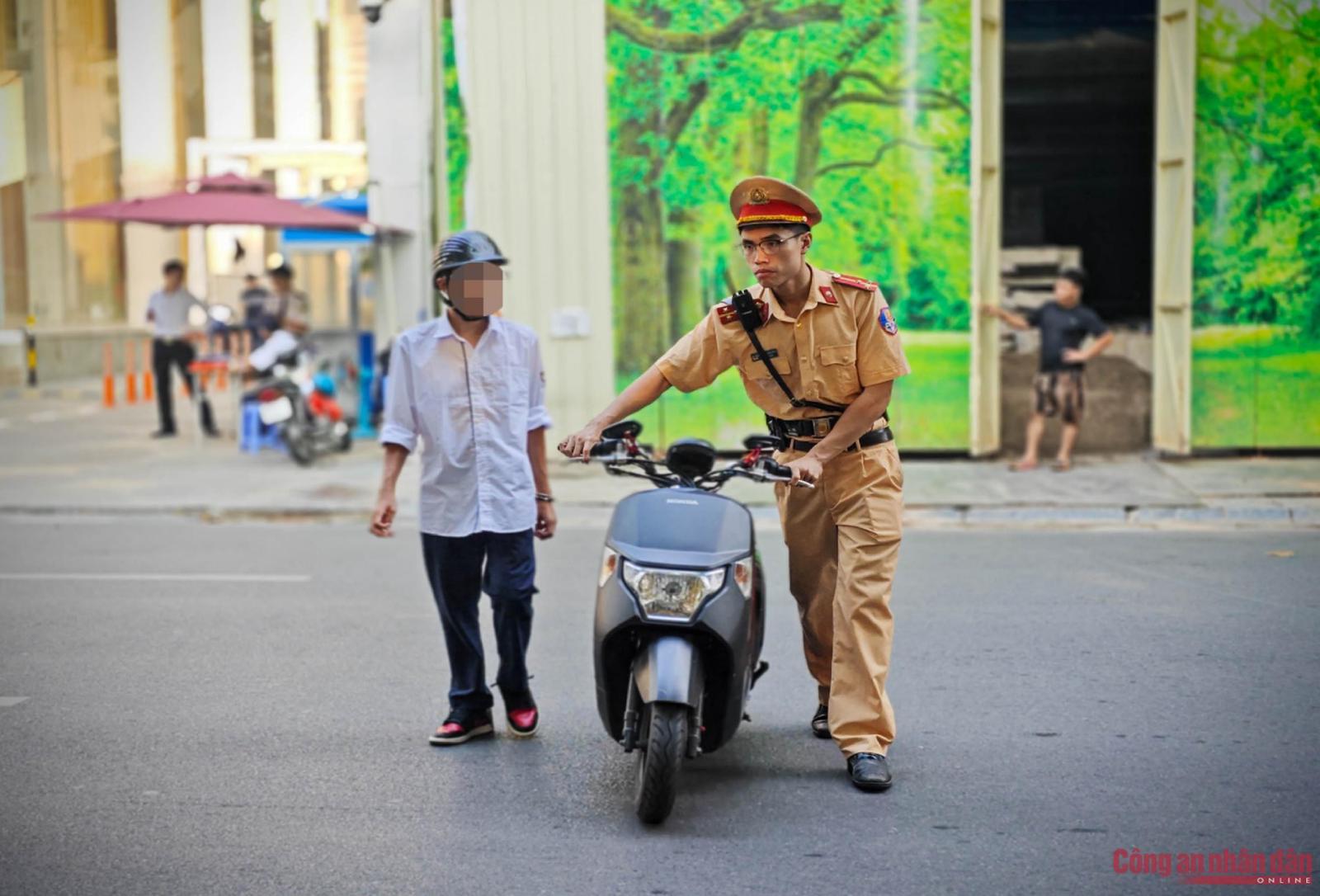 Tại khu vực Hàng Bài - Lý Thường Kiệt (quận Hoàn Kiếm, Hà Nội), Tổ công tác đặc biệt số 4 do Trung tá Nguyễn Tuấn Anh, Đội phó Đội CSGT số 4 tập trung xử lý các trường hợp học sinh, phụ huynh học sinh vi phạm giao thông trong quá trình đến trường khai giảng năm học mới.
