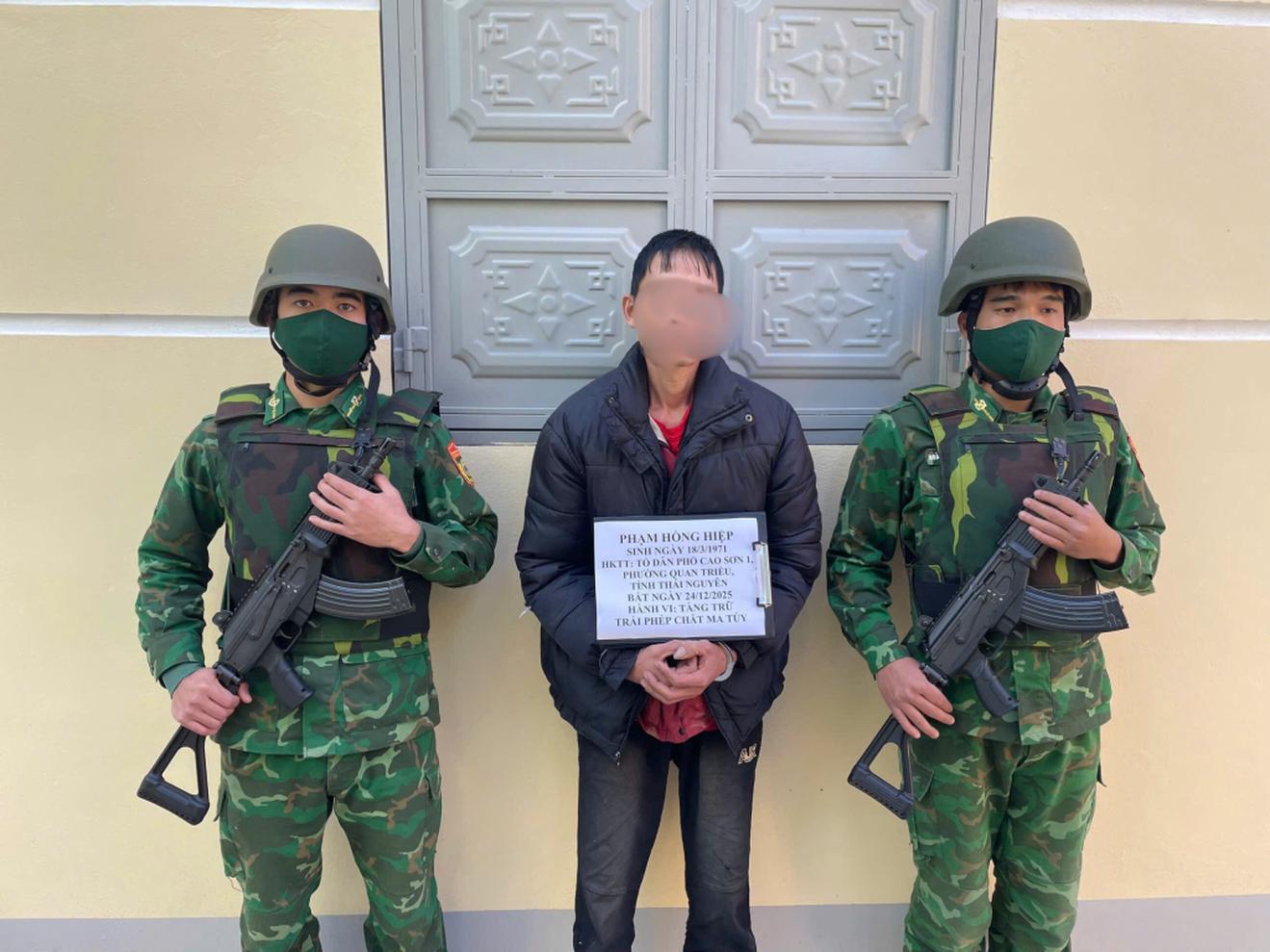 Tiếp đó, lúc 16 giờ 30 phút ngày 24/12/2025, tại khu vực xóm Nà Chào, xã Phục Hòa, tổ công tác của Đồn Biên phòng CKQT Tà Lùng phối hợp với Phòng Nghiệp vụ Bộ Chỉ huy Bộ đội Biên phòng tỉnh Cao Bằng, Công an xã Phục Hòa và hải quan cửa khẩu tiếp tục phát hiện, bắt quả tang Phạm Hồng Hiệp (sinh năm 1971, trú tại tổ dân phố Cao Sơn 1, phường Quan Triều, tỉnh Thái Nguyên) về hành vi tàng trữ trái phép chất ma túy, thu giữ 4,76 gam heroin và 1 xe mô tô.