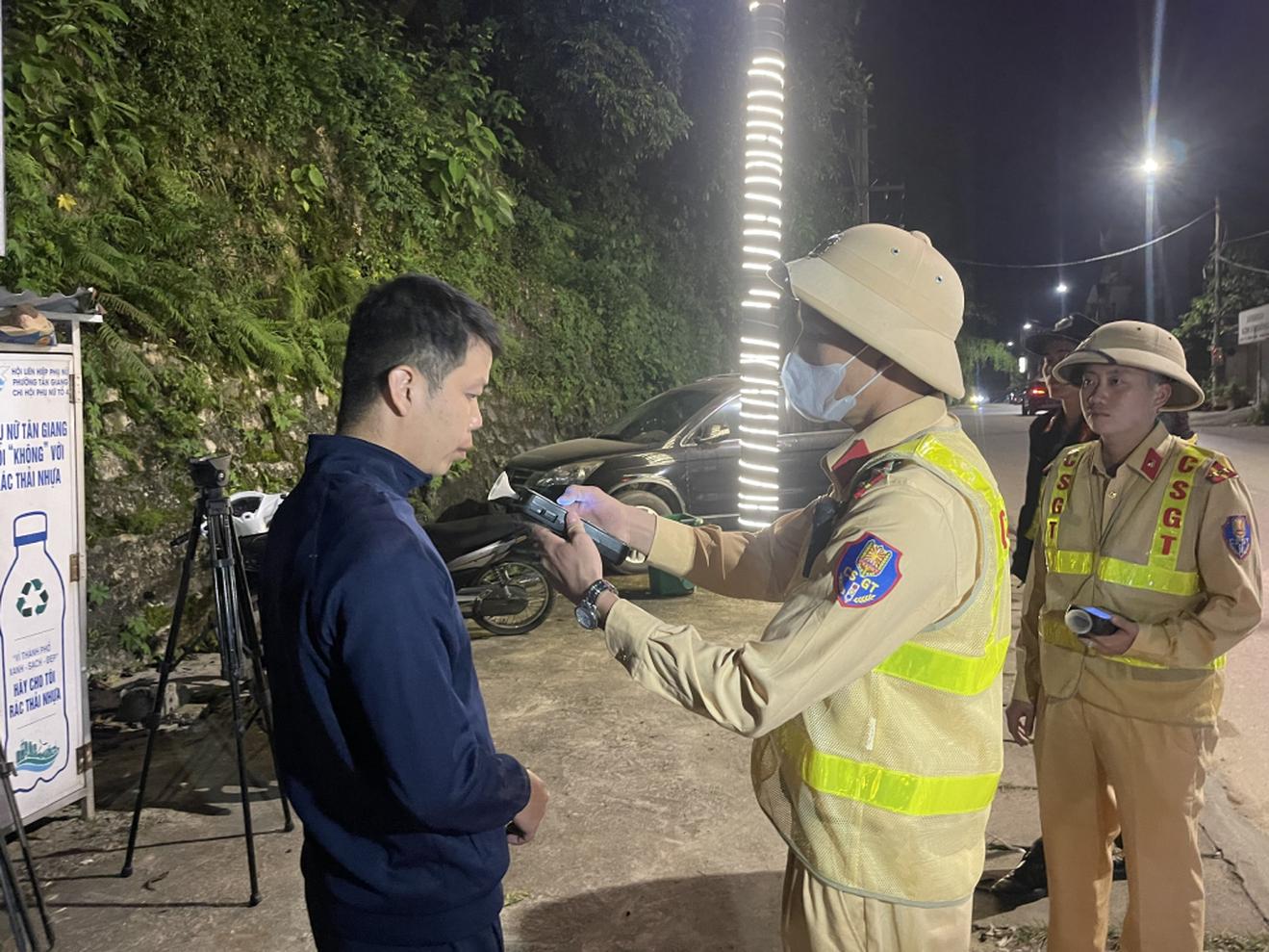 Lực lượng cảnh sát giao thông, Công an tỉnh Cao Bằng tăng cường tuần tra, kiểm soát, kịp thời phát hiện, xử lý nghiêm các trường hợp vi phạm giao thông khi đã sử dụng rượu, bia. Ảnh: Báo Cao Bằng