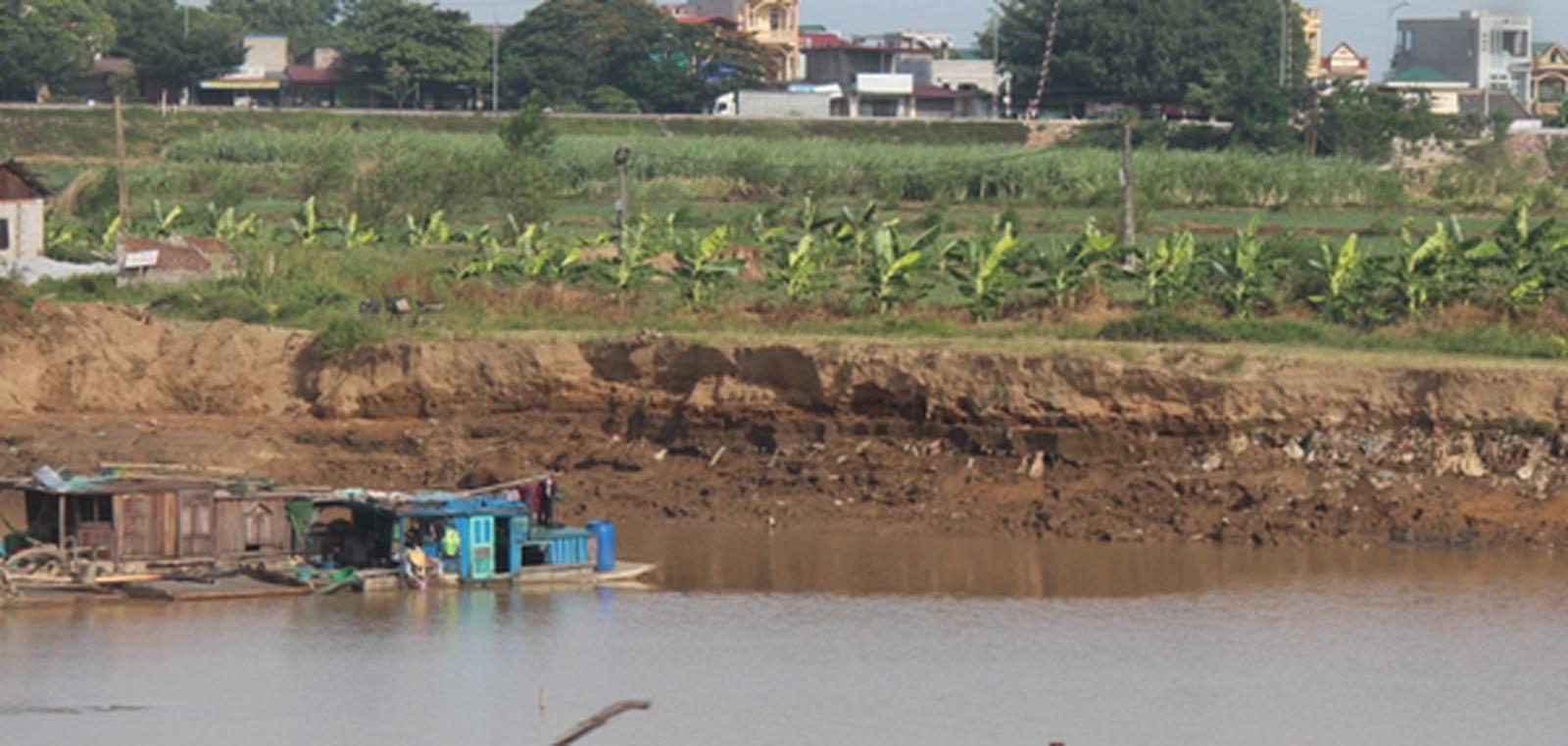 Cát tặc hút sập bãi màu của người dân thôn 7, xã Hoằng Lý. Ảnh: Văn Thanh