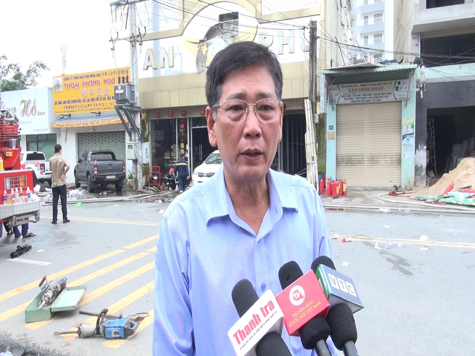 “Lãnh đạo tỉnh và TP Thuận An trước mắt phải tập trung khắc phục hậu quả vụ cháy này. Chúng tôi sẽ cố gắng trong vài tiếng nữa sẽ làm cho xong. Hiện nay anh em đang lấy lời khai chứ chưa có cụ thể thời điểm cháy bên trong có bao nhiêu người. Cơ quan chức năng cũng đang làm rõ thông tin của người mất qua thân nhân và tại bệnh viện”. Phó Chủ tịch Thường trực UBND tỉnh Mai Hùng Dũng cho biết.