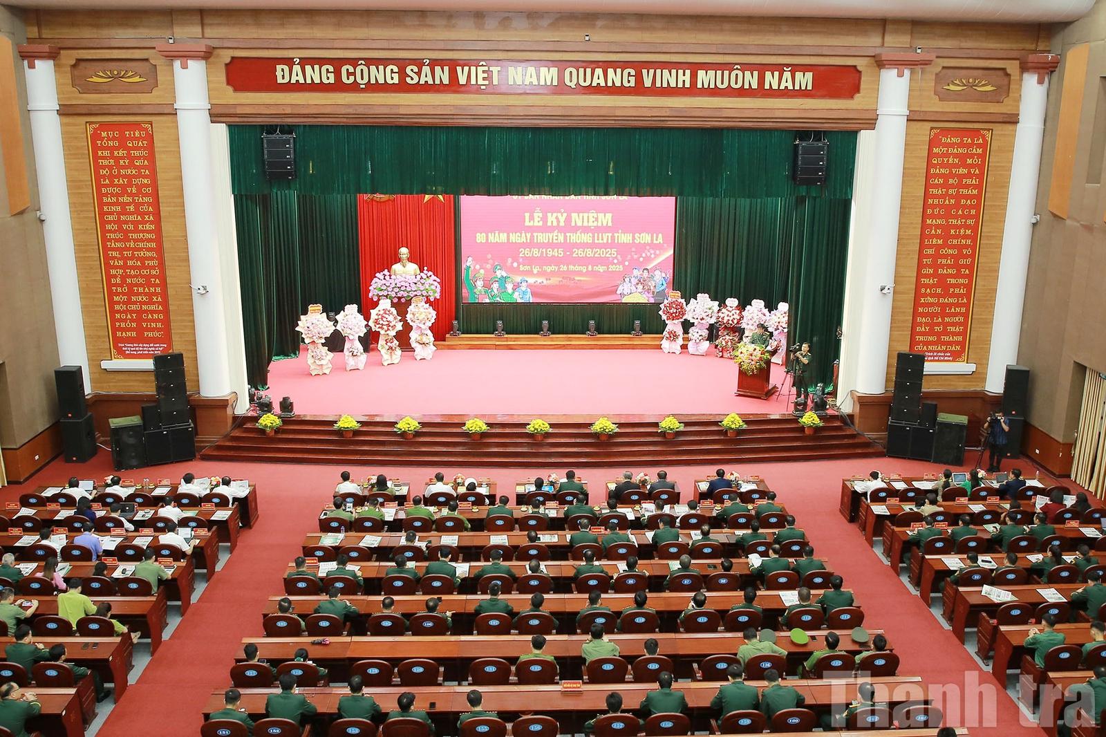 Tại lễ kỷ niệm, các đại biểu đã cùng ôn lại chặng đường 80 năm vẻ vang của Lực lượng vũ trang Nhân dân tỉnh Sơn La. Được hình thành từ chiếc nôi cách mạng của Chi bộ nhà ngục Sơn La và phát triển từ những đội tự vệ du kích vũ trang đầu tiên ở Mường Chanh.
