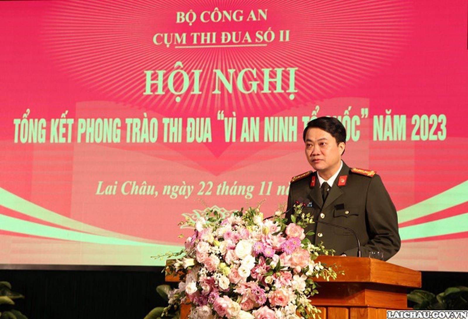 Hội nghị Tổng kết phong trào thi đua "Vì an ninh Tổ quốc" (ANTQ) năm 2023 của Cụm thi đua số II - Bộ Công an. Ảnh: laichau.gov.vn