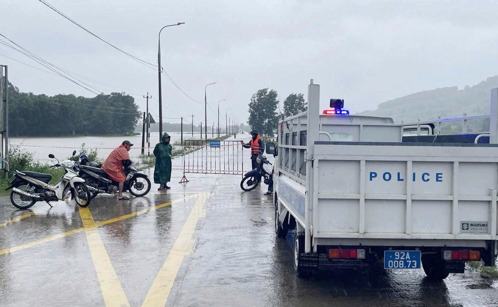 Tại xã Hiệp Đức, lực lượng công an đã đến từng hộ gia đình tuyên truyền, hướng dẫn người dân di chuyển tài sản, đồng thời phối hợp cùng các đơn vị di dời người dân ở vùng trũng thấp, lập chốt cảnh báo tại khu vực ngập sâu, có nguy cơ sạt lở.