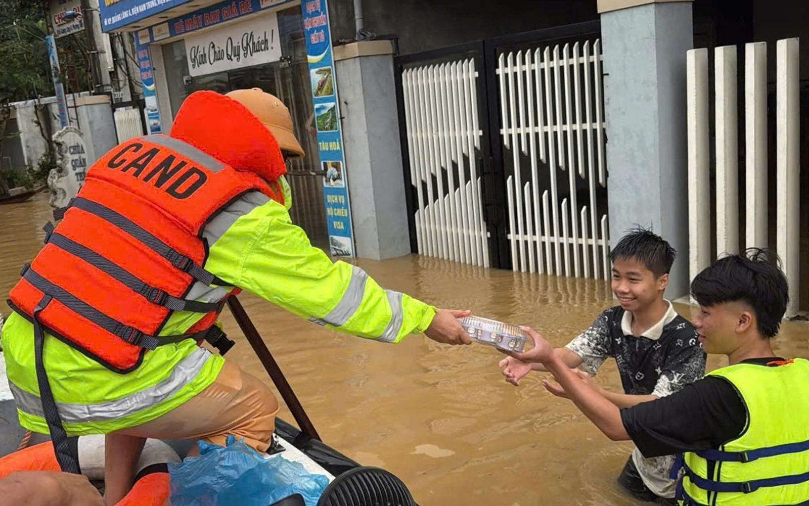 Hàng nghìn suất cơm nóng, nước uống, thuốc men được vận chuyển bằng xuồng, ca nô đến tận tay người dân ở vùng bị chia cắt.