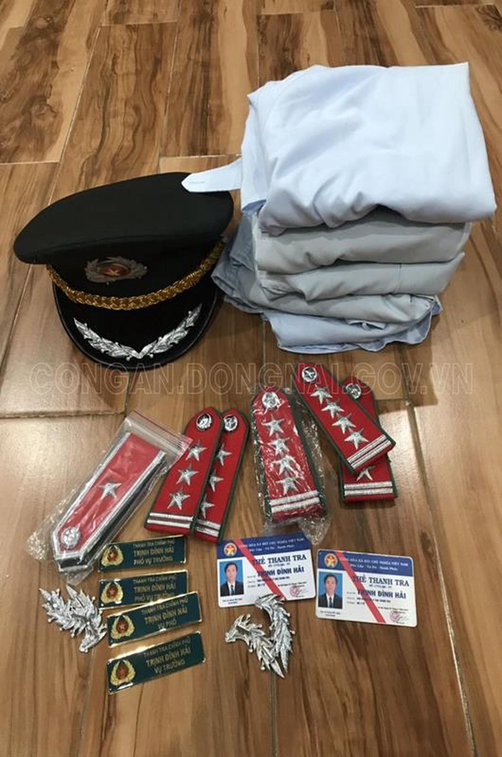 Công an phường Trảng Dài đã lập biên bản bắt giữ người có hành vi phạm tội quả tang đối với Trịnh Đình Hải về hành vi làm giả, sử dụng tài liệu giả của cơ quan tổ chức và tạm giữ toàn bộ số tang vật trên. Hải khai nhận, những trang phục như áo, nón phù hiệu, cầu vai, bảng tên và thẻ thanh tra Hải đặt mua trên mạng xã hội với giá 4 triệu đồng.