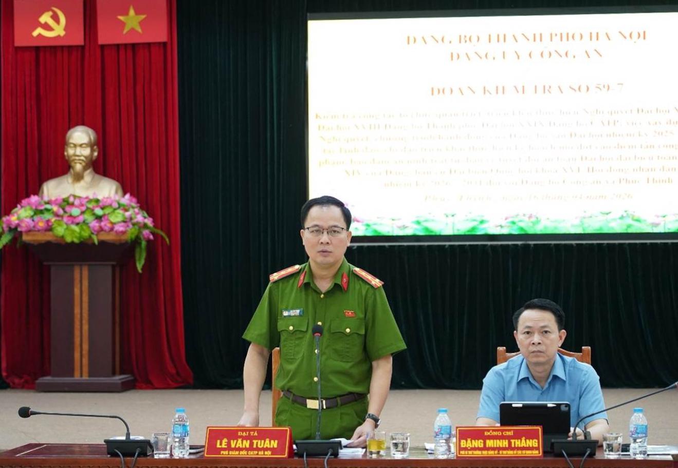 (Thanh tra) - Ngày 16/4, tại trụ sở Công an xã Phúc Thịnh, Đoàn kiểm tra số 59-7 của Ban Thường vụ Đảng ủy Công an TP Hà Nội do Đại tá Lê Văn Tuân, Ủy viên Ban Thường vụ Đảng ủy, Phó Giám đốc Công an TP làm Trưởng đoàn, đã tiến hành kiểm tra, giám sát đối với Đảng ủy Công an xã Phúc Thịnh.