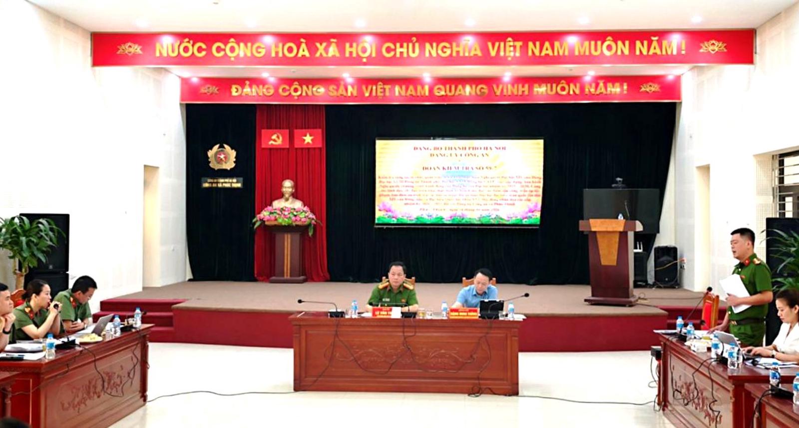 Đoàn kiểm tra số 59-7 của Ban Thường vụ Đảng ủy Công an TP Hà Nội tiến hành kiểm tra, giám sát đối với Đảng ủy Công an xã Phúc Thịnh. Ảnh: Trọng Nghĩa