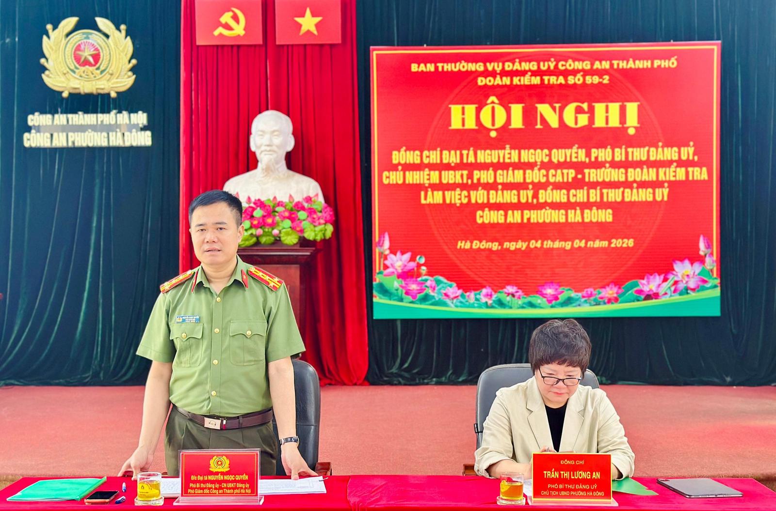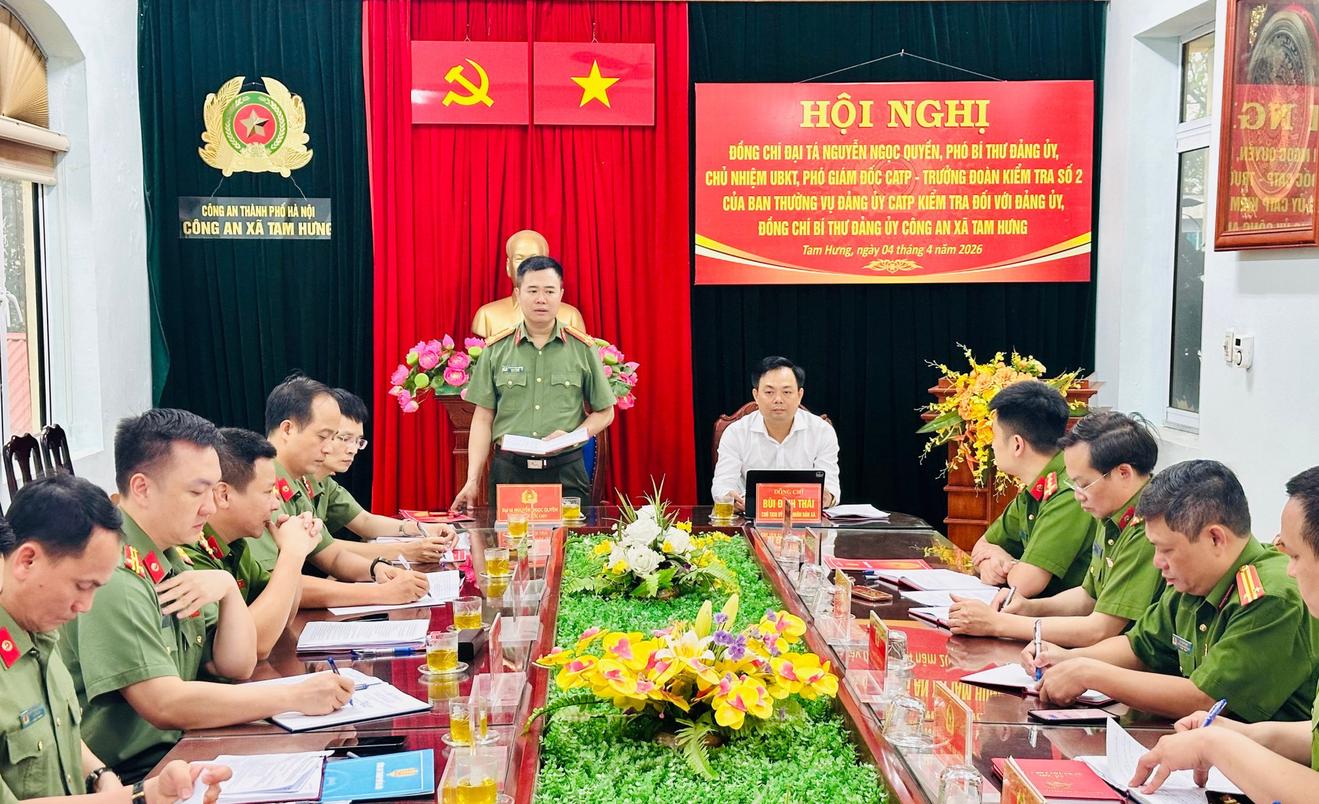 (Thanh tra) - Ngày 4/4, Đoàn kiểm tra số 2 của Ban Thường vụ Đảng ủy Công an thành phố Hà Nội do Đại tá Nguyễn Ngọc Quyền, Phó Bí thư Đảng ủy, Phó Giám đốc, Chủ nhiệm Ủy ban Kiểm tra Đảng ủy Công an thành phố làm Trưởng đoàn đã có buổi làm việc với Đảng ủy Công an xã Tam Hưng và Đảng ủy Công an phường Hà Đông.