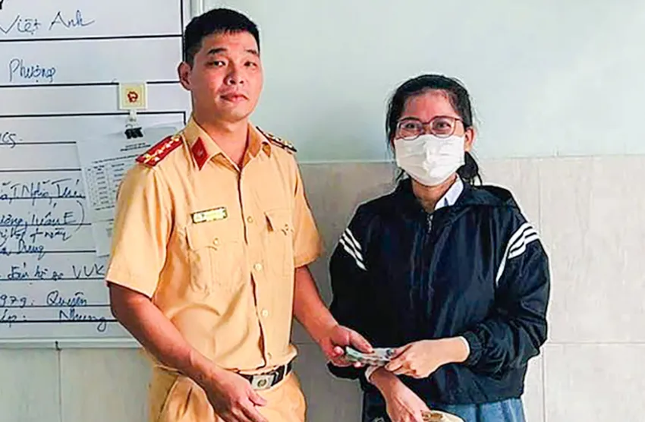 Trên đường đi làm nhiệm vụ, Đại úy Đào Văn Quyết, cán bộ Đội sát hạch thuộc Phòng CSGT Công an tỉnh Khánh Hòa nhặt được một bọc nylon màu đen (tại đường Lê Thành Phương, phường Tây Nha Trang) bên trong có giấy tờ tùy thân cùng 50 triệu đồng tiền mặt.