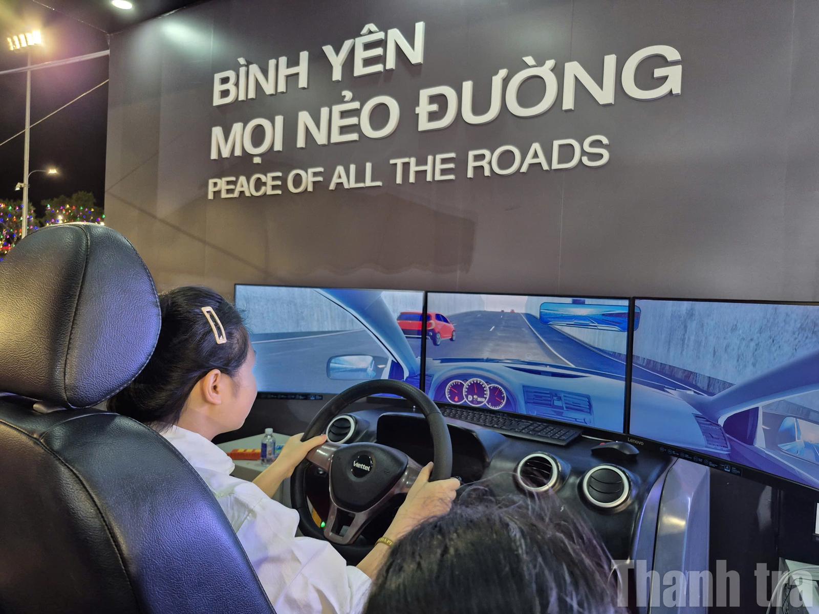 Khu trải nghiệm các thiết bị mô phỏng kỹ năng đảm bảo an toàn khi tham gia giao thông. Ảnh: TM