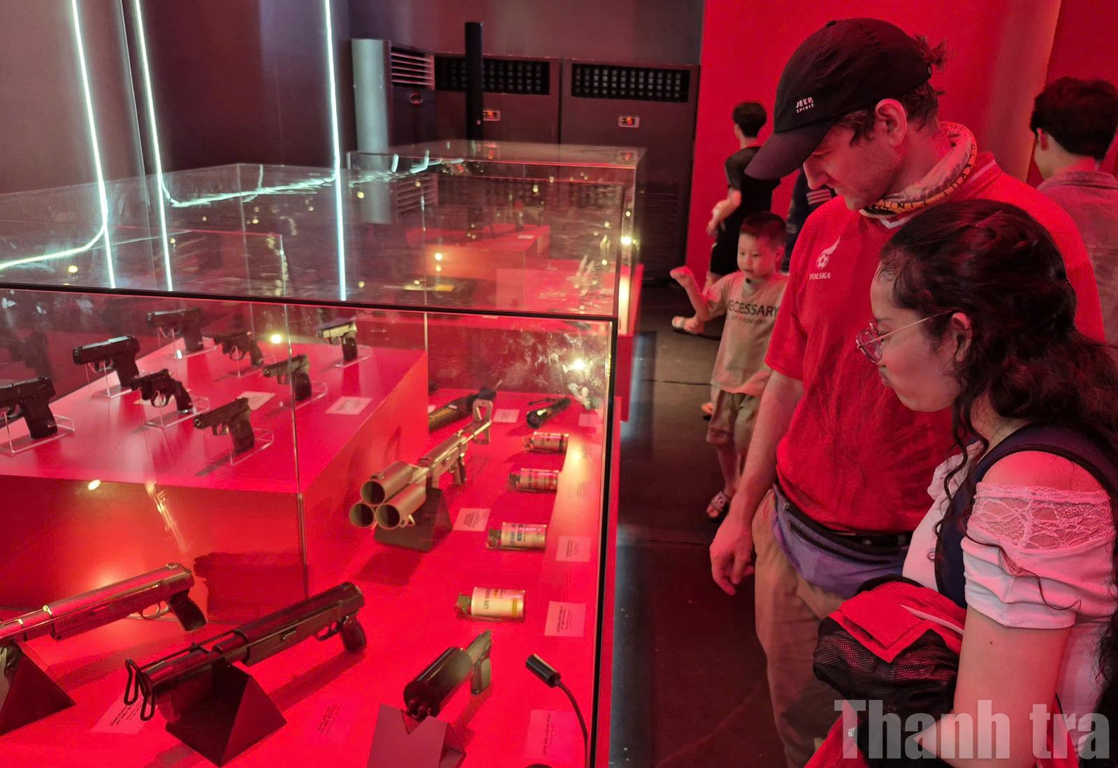 Khách quốc tế tại khu trưng bày các thiết bị chiến đấu của lực lượng Công an Nhân dân. Ảnh: TM