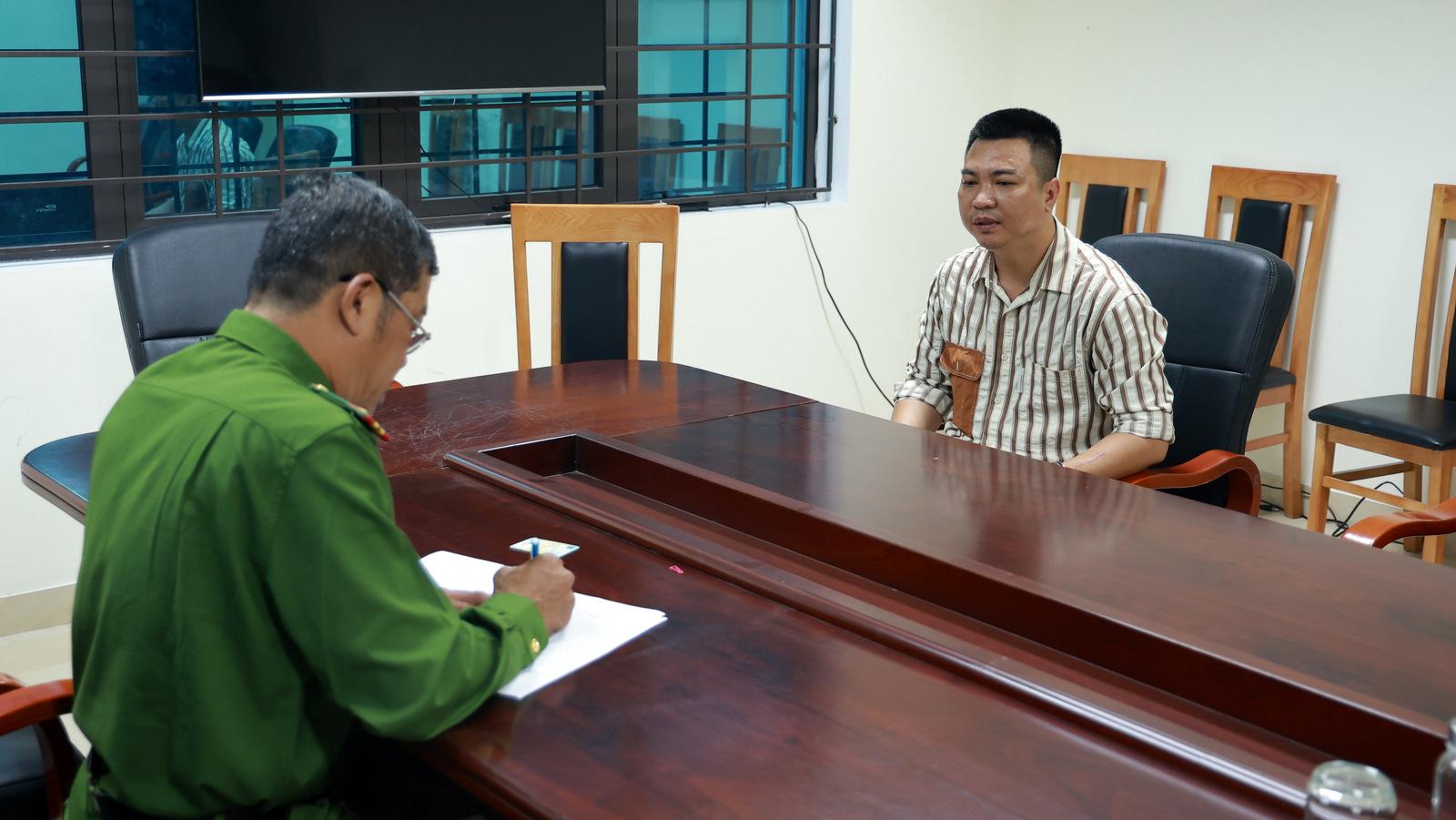 Được sự vận động của cơ quan Công an, đối tượng Ngô Đức Dũng đã đến cơ quan Công an đầu thú. Ảnh: Minh Tân