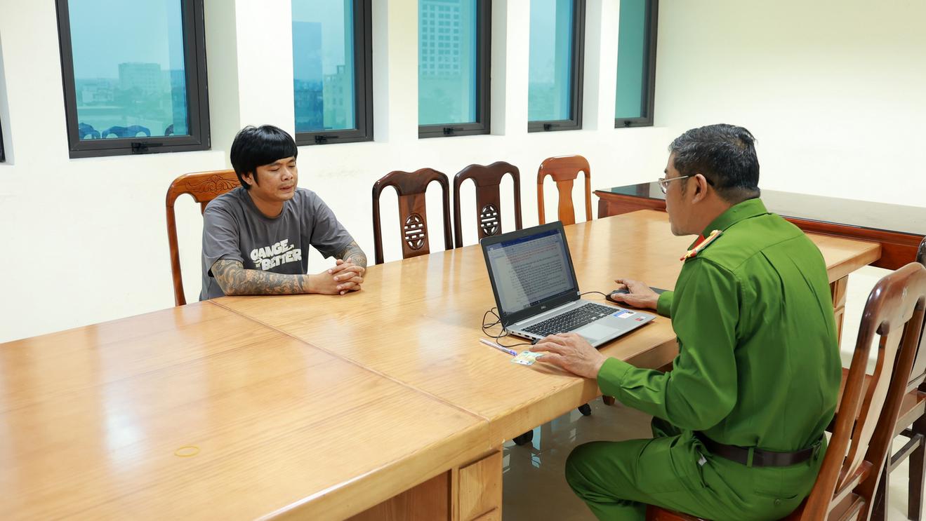 Đối tượng Lê Thanh Thảo tại cơ quan điều tra. Ảnh: Minh Tân