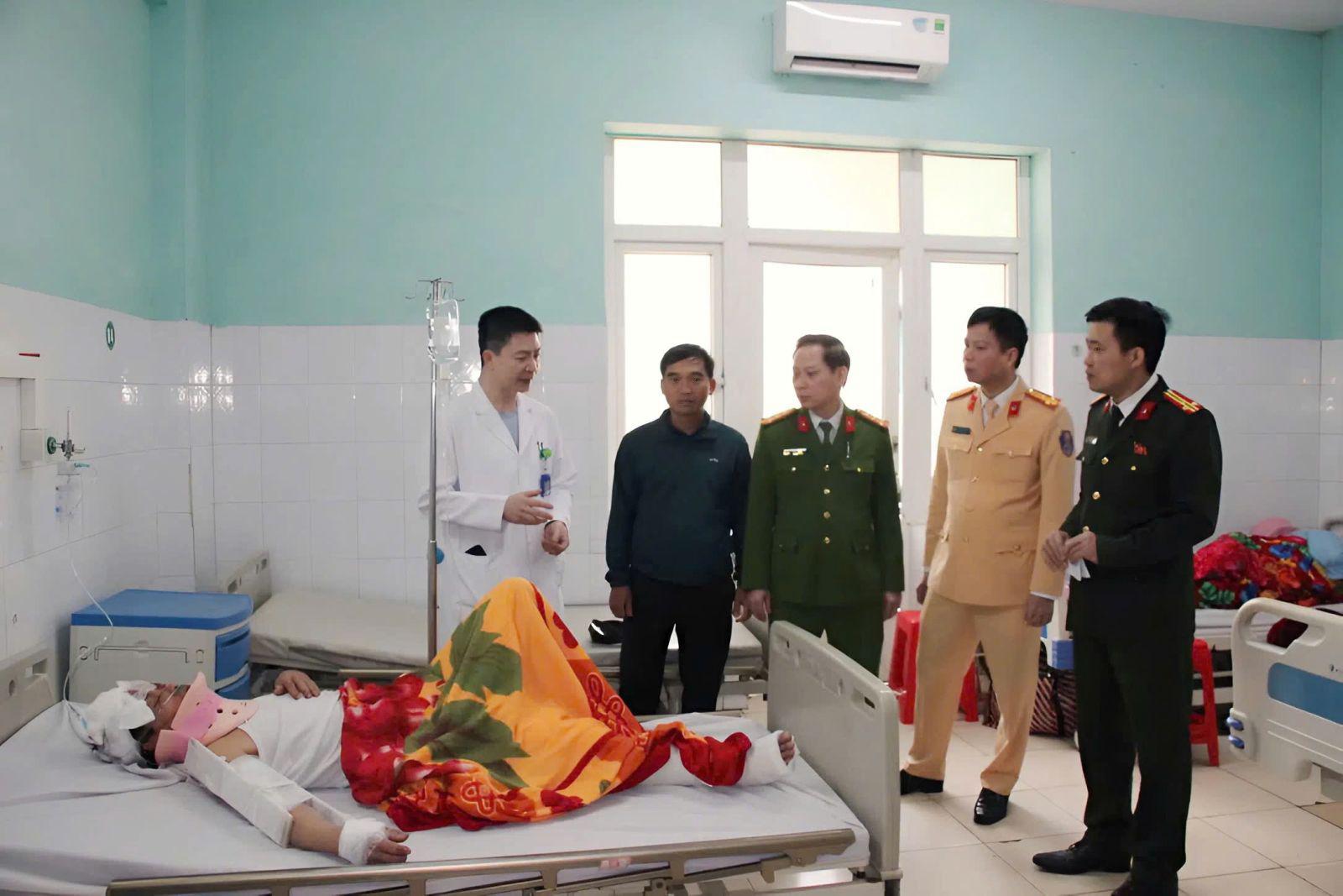 Phó Giám đốc Công an tỉnh Thanh Hóa Trịnh Văn Giang trực tiếp thăm hỏi, động viên các nạn nhân bị thương trong vụ tai nạn giao thông. Ảnh: Công an Thanh Hoá