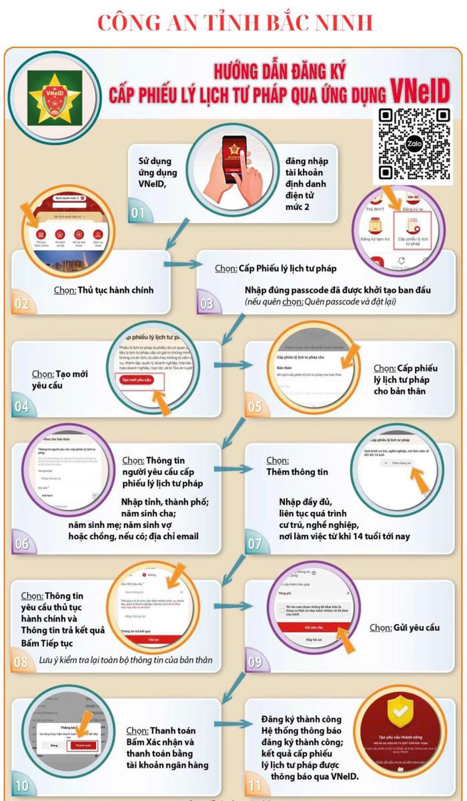 Hướng dẫn cấp phiếu lý lịch tư pháp qua VNeID. Ảnh: CA Bắc Ninh