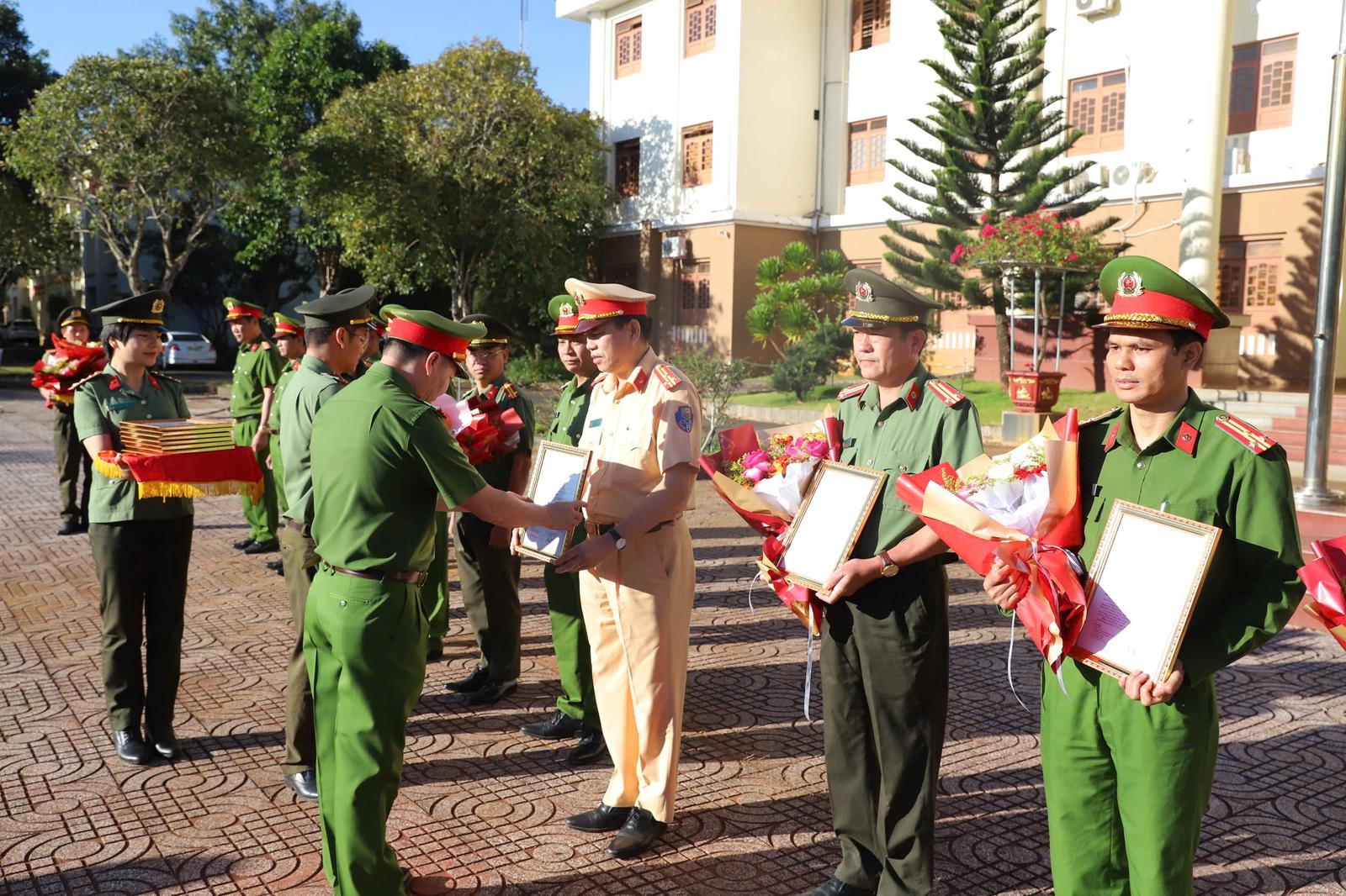 Thừa ủy quyền của Bộ Công an, lãnh đạo Công an tỉnh trao thưởng cho các đơn vị lập thành tích xuất sắc trong đấu tranh, phòng, chống tội phạm. Ảnh: Công an cung cấp