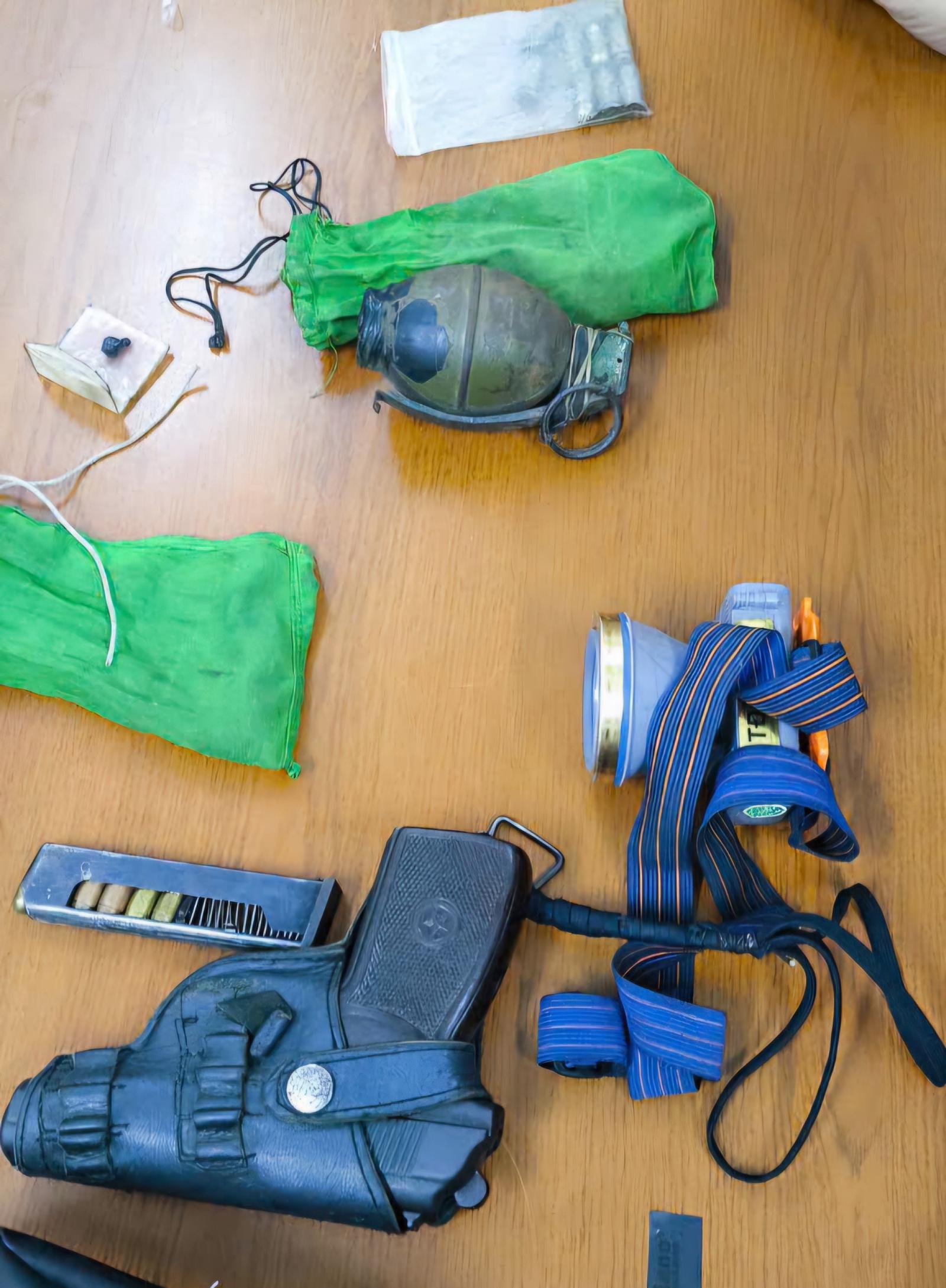 Thời điểm này, tổ công tác thu giữ 1 khẩu súng quân dụng K59 và 15 viên đạn (trong đó có 6 viên đạn nằm trong hộp tiếp đạn, 9 viên đạn nằm bên ngoài), 1 quả lựu đạn của đối tượng Nhà luôn mang theo để phòng thân.