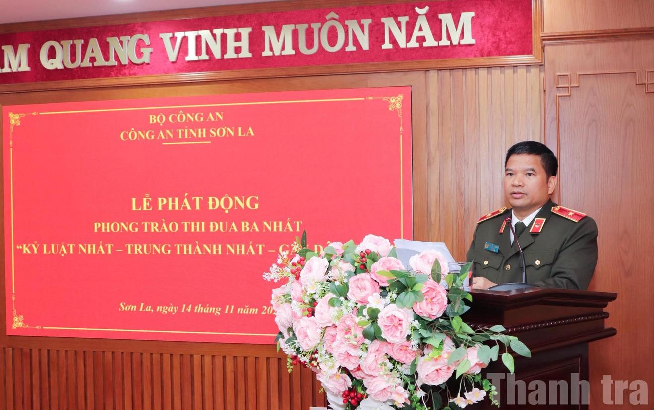 (Thanh tra) - Ngày 14/11, Thiếu tướng Đặng Trọng Cường, Giám đốc Công an tỉnh Sơn La chủ trì buổi lễ phát động phong trào thi đua “Ba nhất: Kỷ luật nhất - Trung thành nhất - Gần dân nhất”.