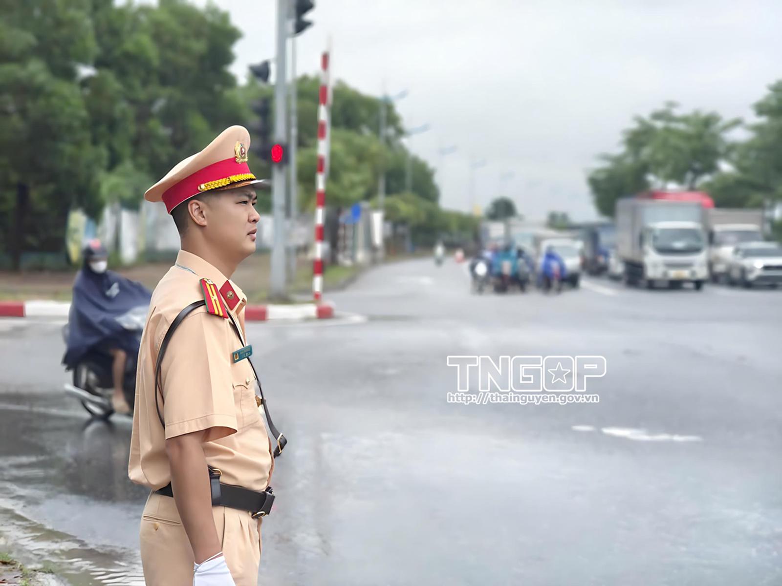 Cán bộ Cảnh sát giao thông (Công an tỉnh) thực hiện điều tiết giao thông. Ảnh: Cổng thông tin điện tử tỉnh Thái Nguyên