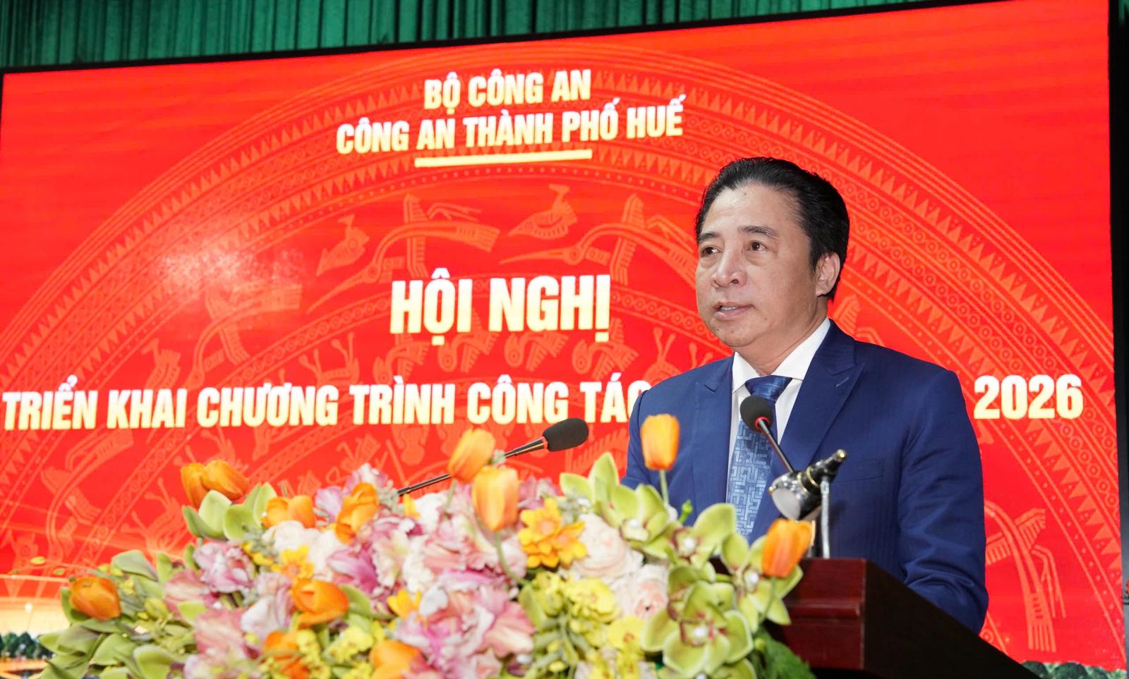 Phát biểu tại hội nghị, Chủ tịch UBND TP Huế Nguyễn Khắc Toàn chúc mừng và biểu dương những thành tích, chiến công của lực lượng Công an thành phố đạt được trong năm qua. Đồng thời, đề nghị năm 2026, trong vai trò và vị thế mới của thành phố trực thuộc Trung ương, Công an TP Huế chủ động tham mưu cho Thành ủy, UBND thành phố các chủ trương, giải pháp chiến lược về bảo vệ an ninh quốc gia, trật tự an toàn xã hội; nắm chắc, dự báo đúng tình hình từ sớm, từ xa, không để bị động, bất ngờ, phát sinh điểm nóng.