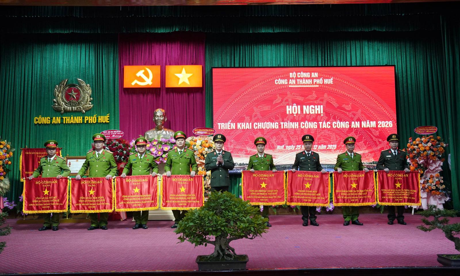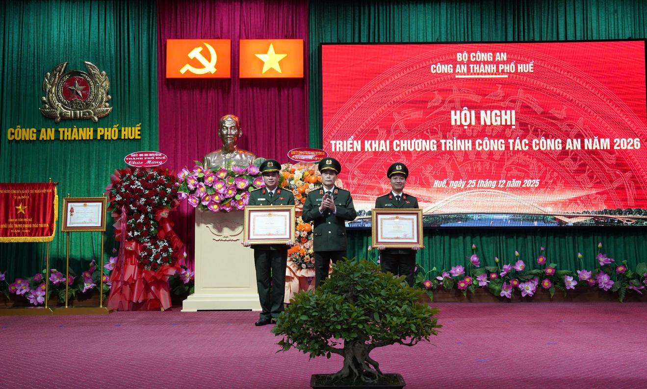 Tổng kết phong trào thi đua Vì an ninh Tổ quốc, Công an TP Huế vinh dự được Thủ tướng Chính phủ tặng Cờ thi đua xuất sắc năm 2025. Toàn lực lượng có 148 lượt tập thể và 1073 lượt cá nhân được các cấp khen thưởng; 1 tập thể được phong tặng danh hiệu Anh hùng lực lượng vũ trang Nhân dân. Đặc biệt, Công an TP Huế vinh dự được Chủ tịch nước tặng Huân chương Chiến công hạng Nhì, 1 cá nhân được tặng Huân chương Chiến công hạng Ba, ghi nhận những chiến công đặc biệt xuất sắc trong chiến đấu và phục vụ chiến đấu.