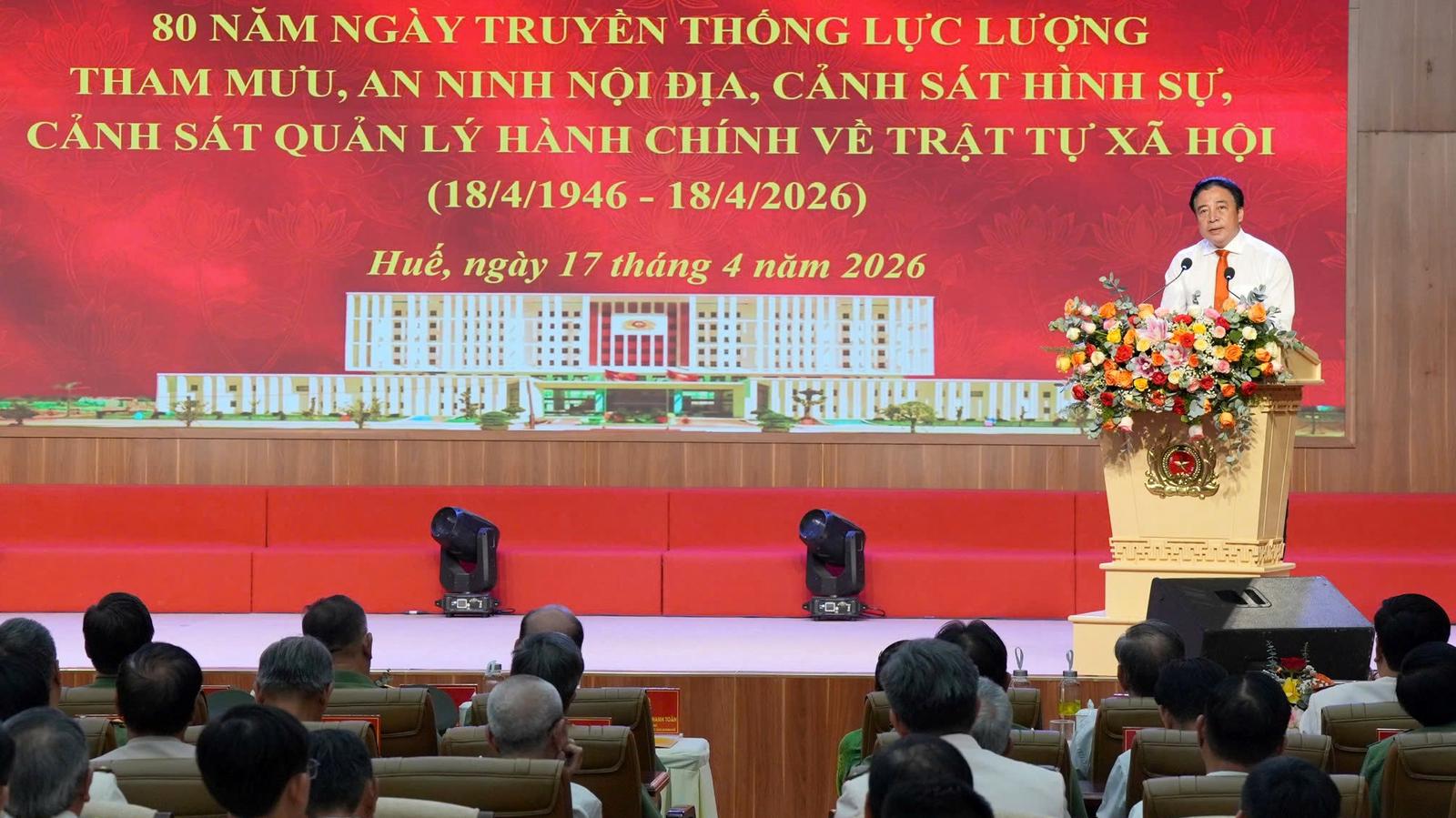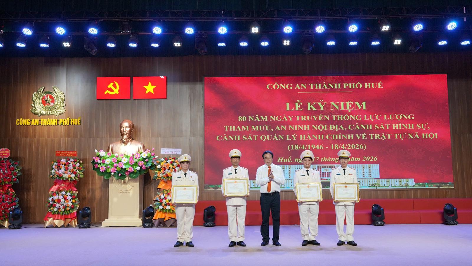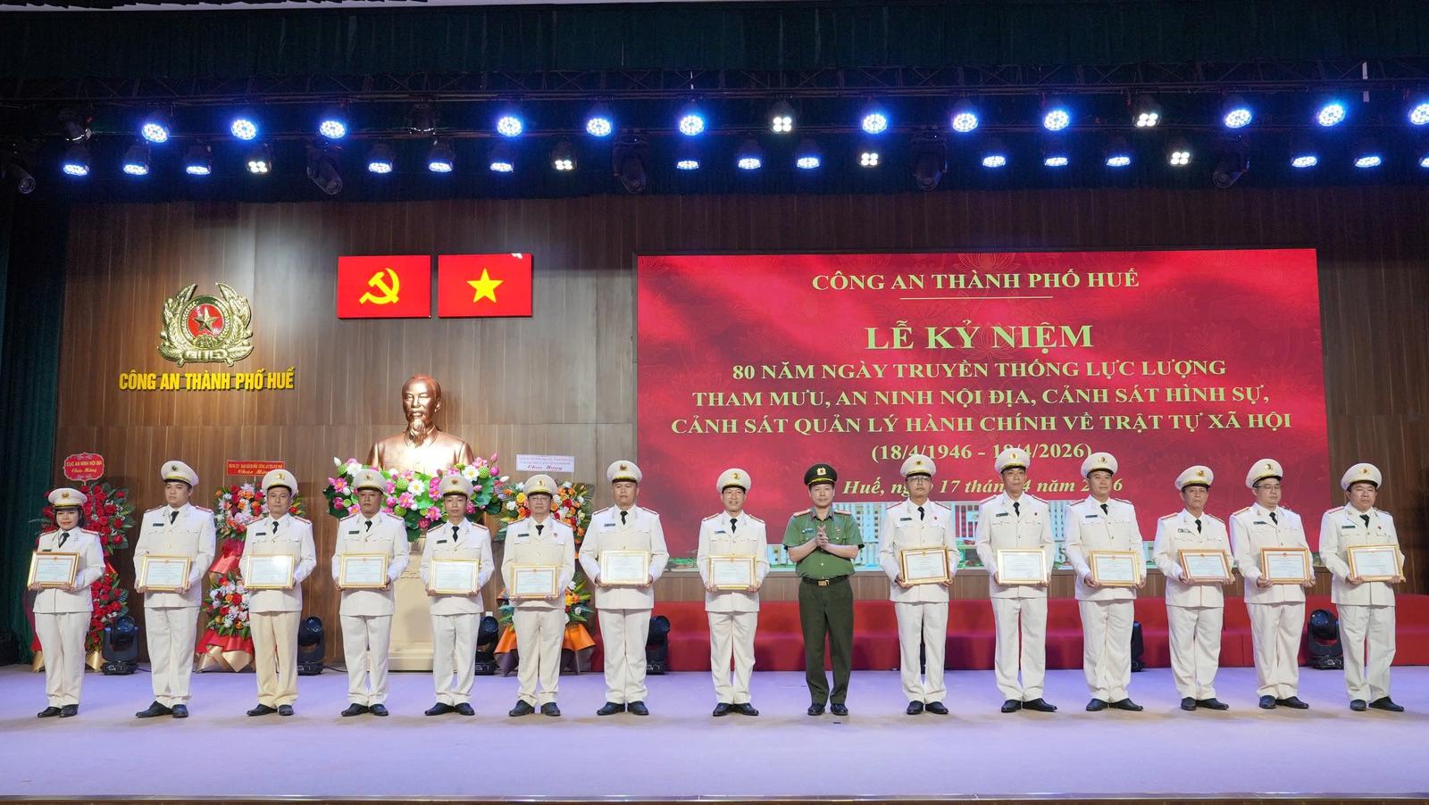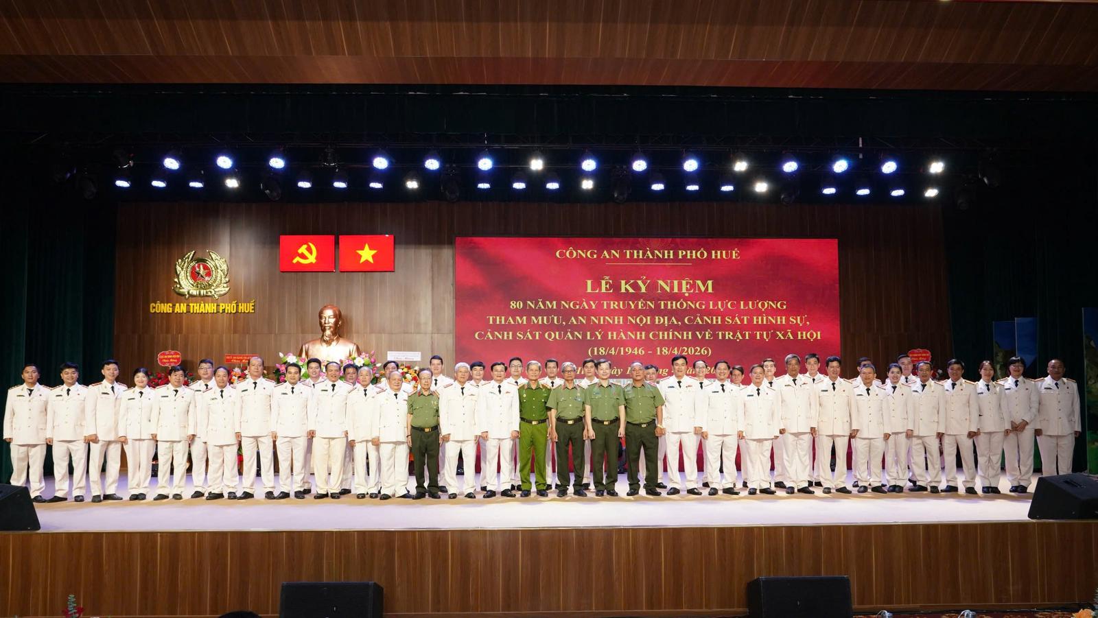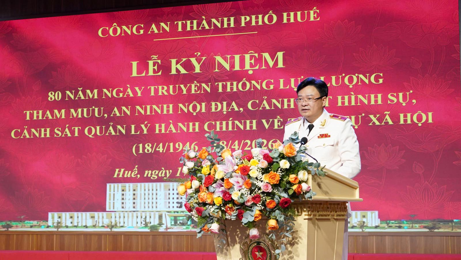 Chiều 17/4, Công an TP Huế long trọng tổ chức Lễ kỷ niệm 80 năm Ngày truyền thống các lực lượng Tham mưu, An ninh nội địa, Cảnh sát hình sự và Cảnh sát QLHC về TTXH.